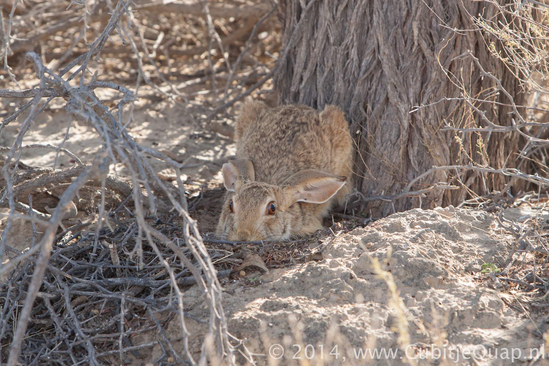 Nocturnal, but some early morning and late afternoon activity may occur. Lies up in shallow indentations in the ground. Usually relies on camouflage when approached, only getting up and running off in the last minute. Normally zigzag, often at high speed.