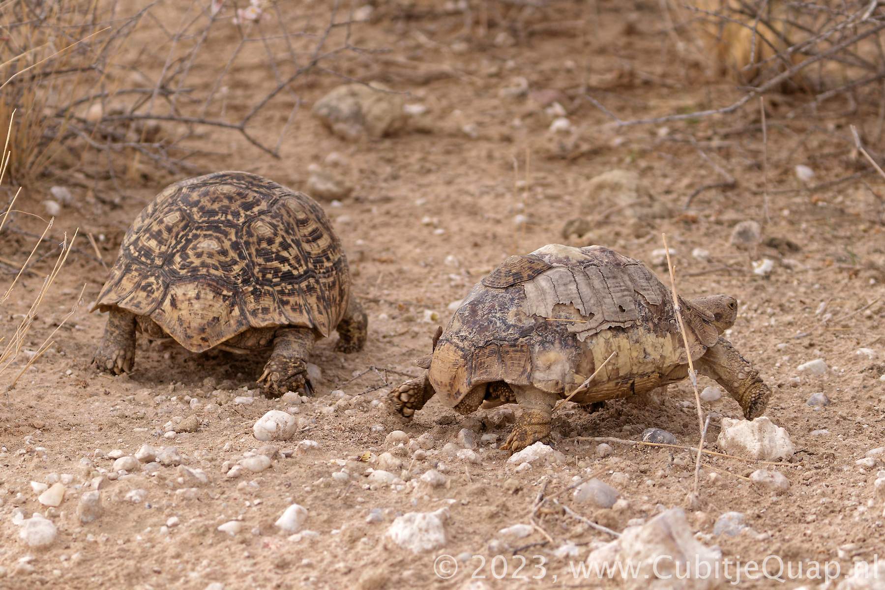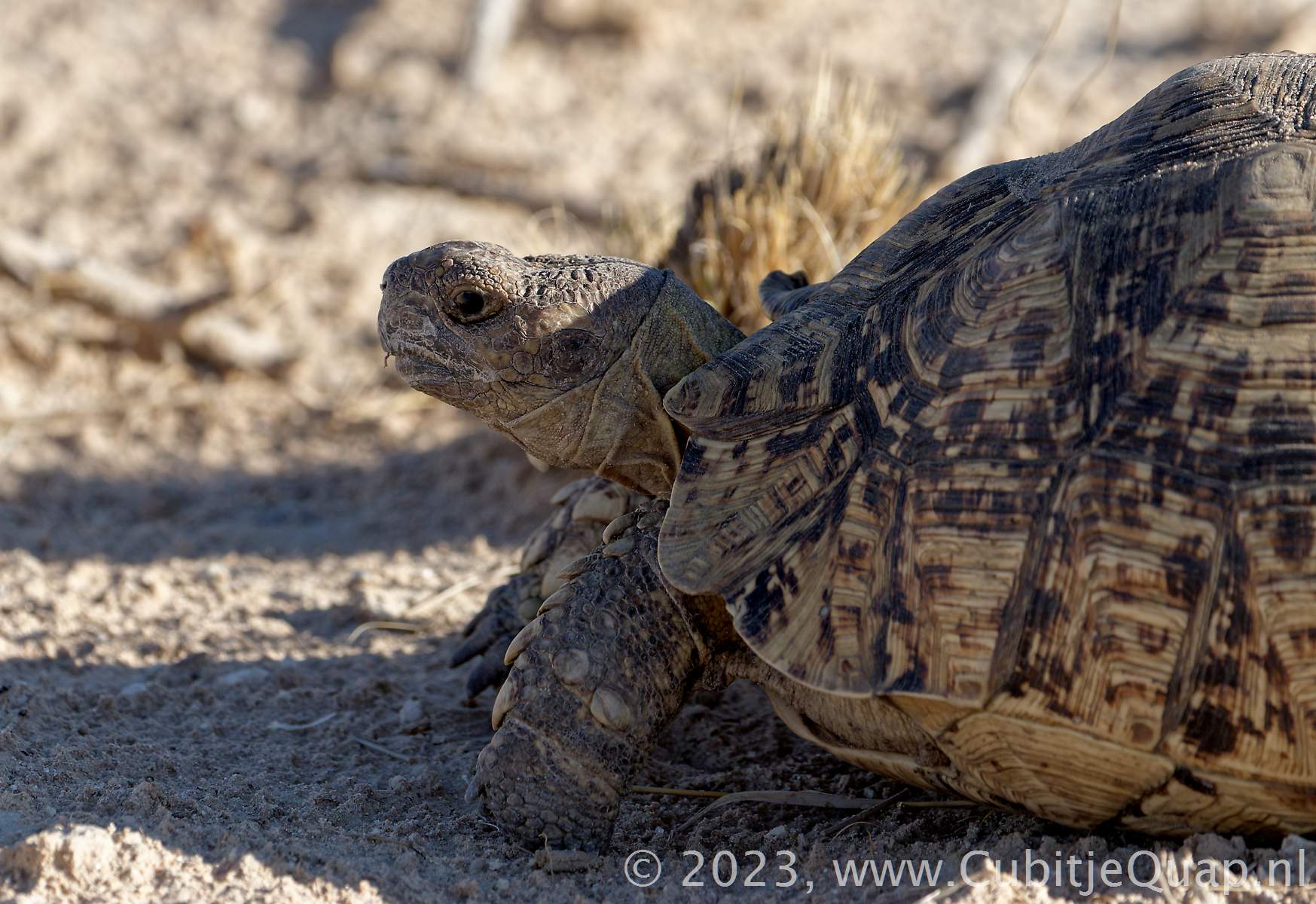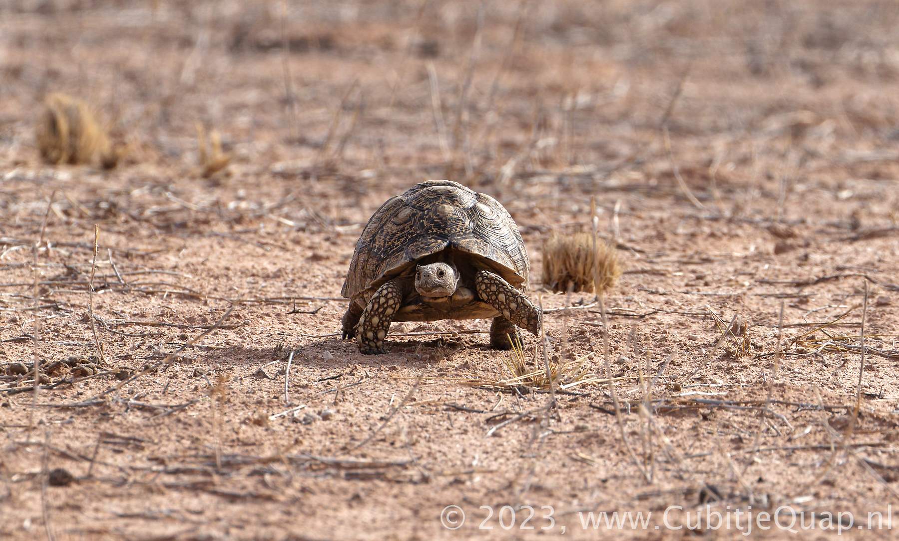 A grazing tortoise that favours semi-arid, thorny to grassland habitats. Widespread except most of highveld, succulent Karoo and Namib Desert.