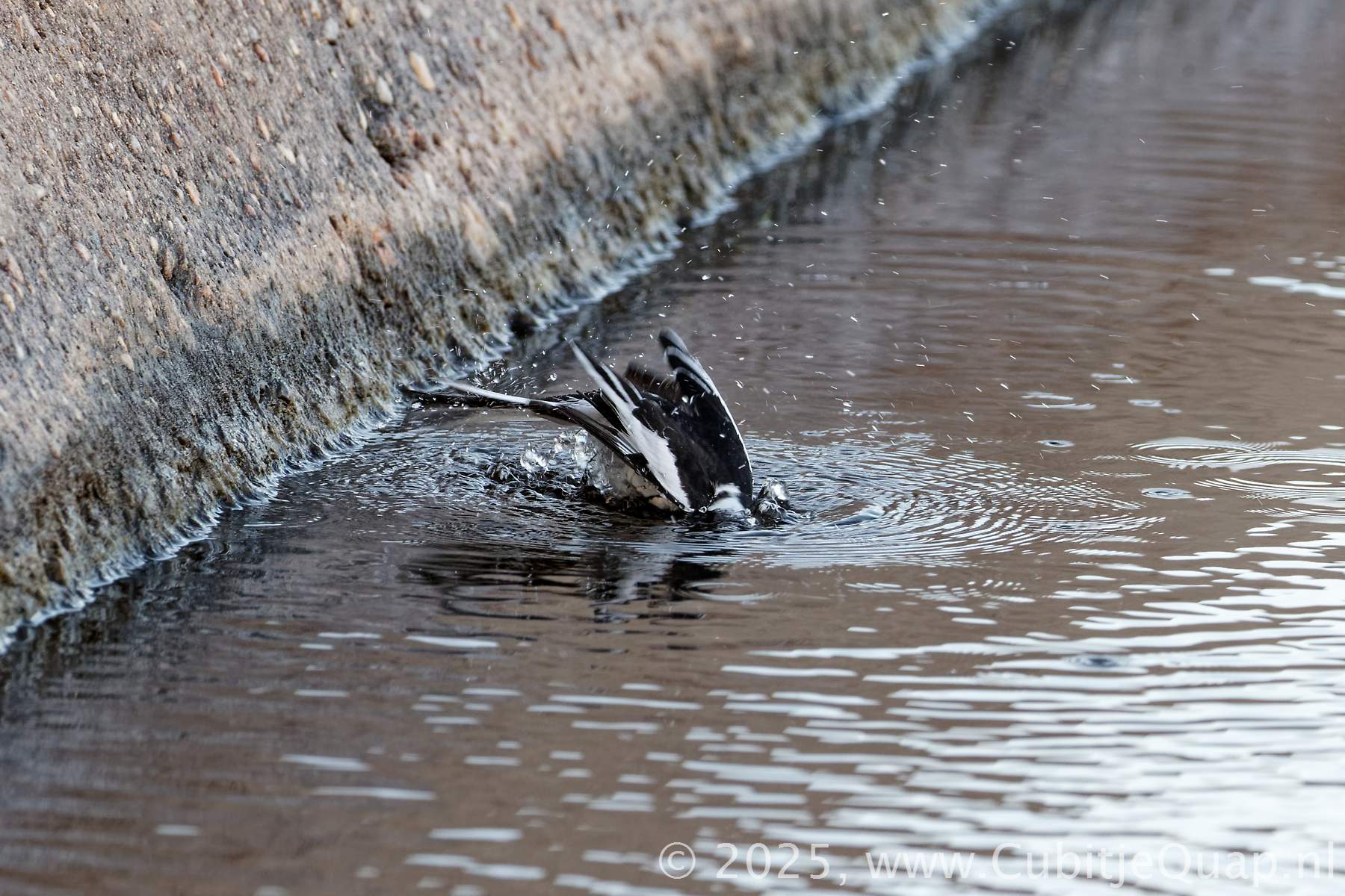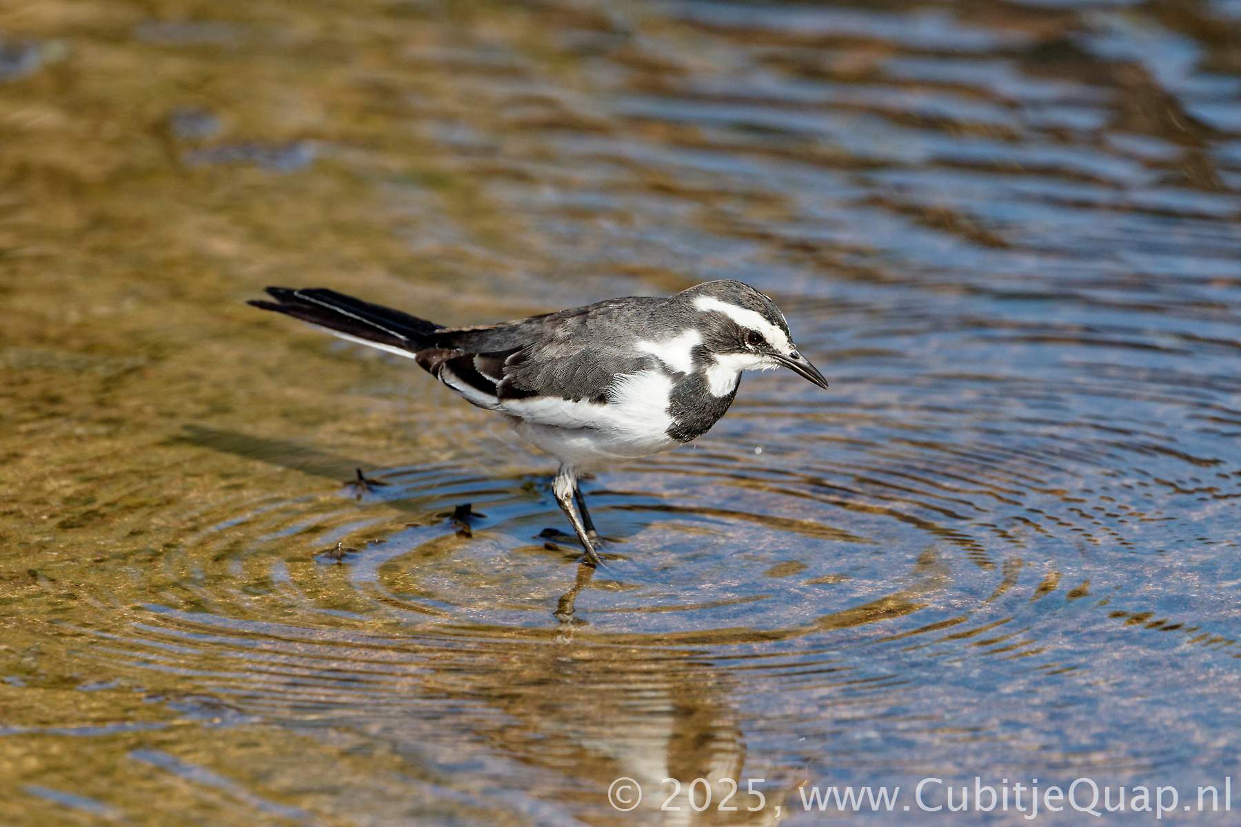 An unmistakable, large wagtail with black-and-whte pied plumage.
