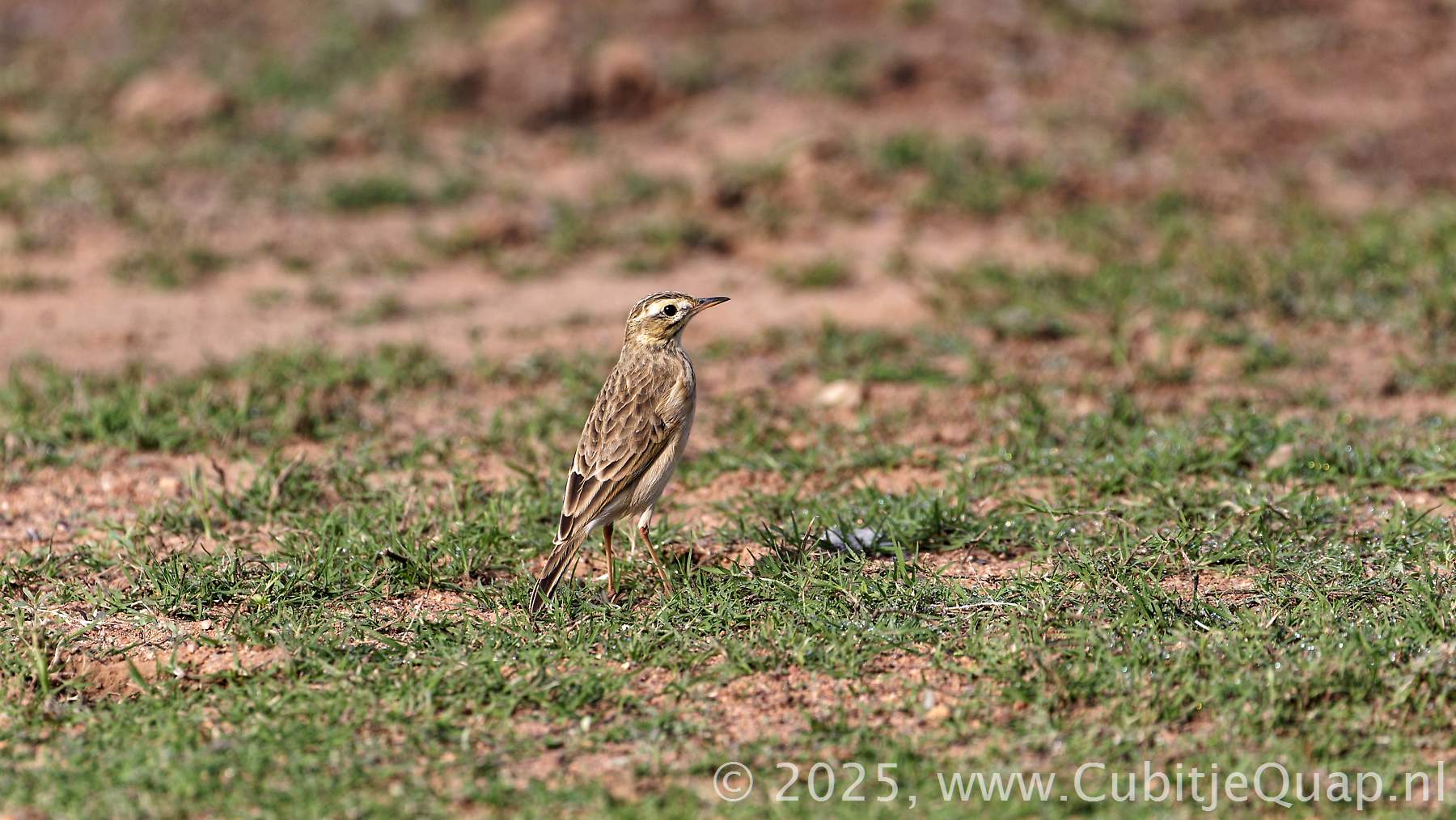 Display flight and song distinguish it from all species except Mountain Pipit, from which it differs by its call, its white (not buffy) outer tail feathers and the yellow (not pink) base to its lower mandible. It may be told from Long-billed Pipit by its bolder facial markings and breast streaking, and the white (not buff) outer tail feathers.