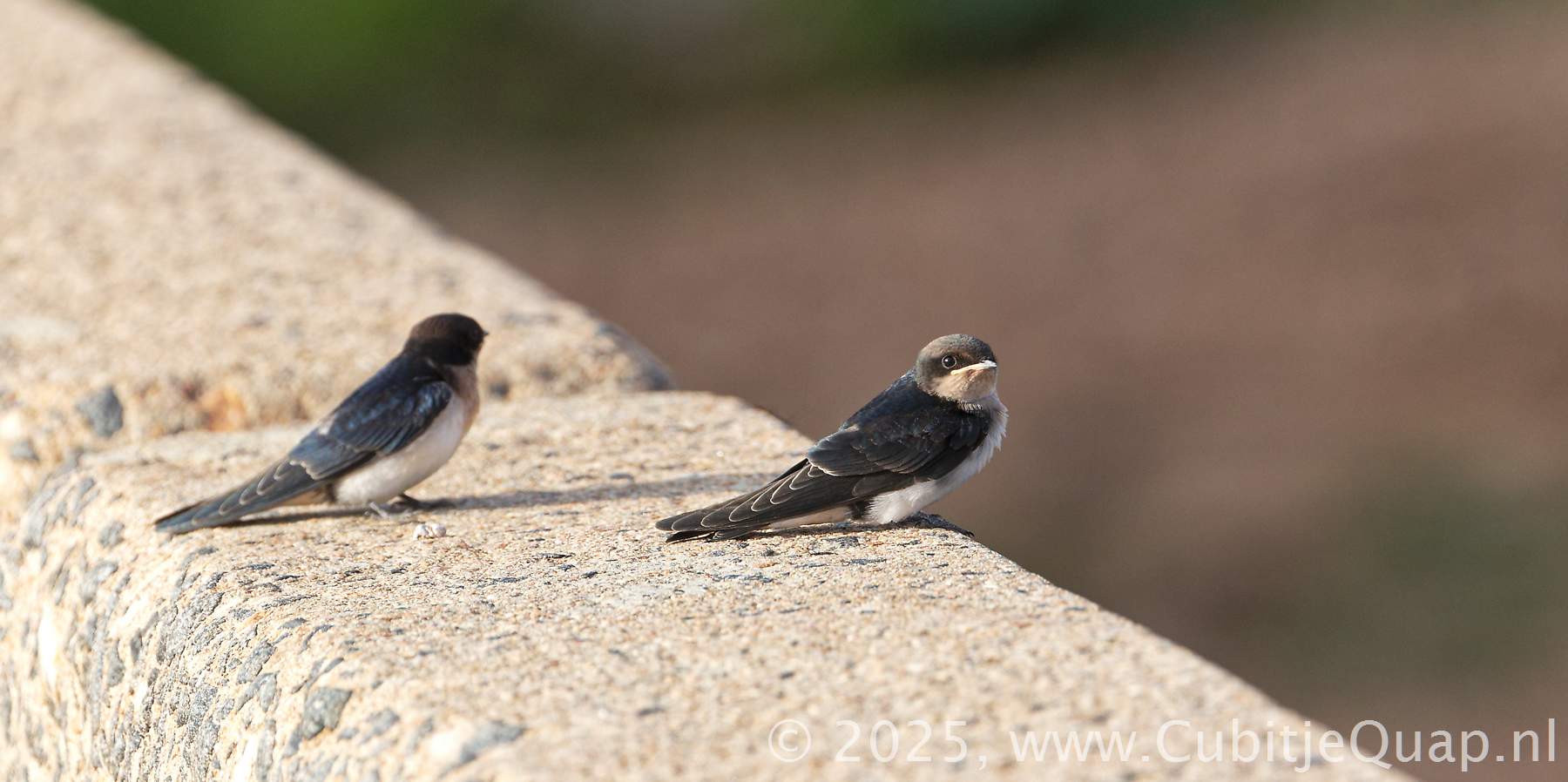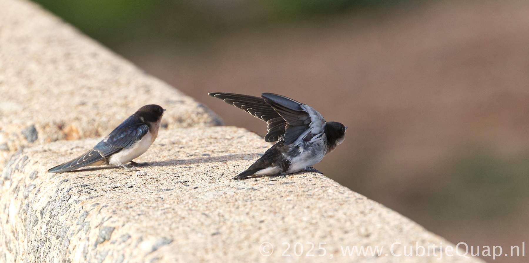Swallow-like; the only martin in the region to have pure white underparts and a white rump. In flight from below it is easily confused with grey-rumped swallow, but has a noticably less deeply forked tail and broader based, shorter wings.
