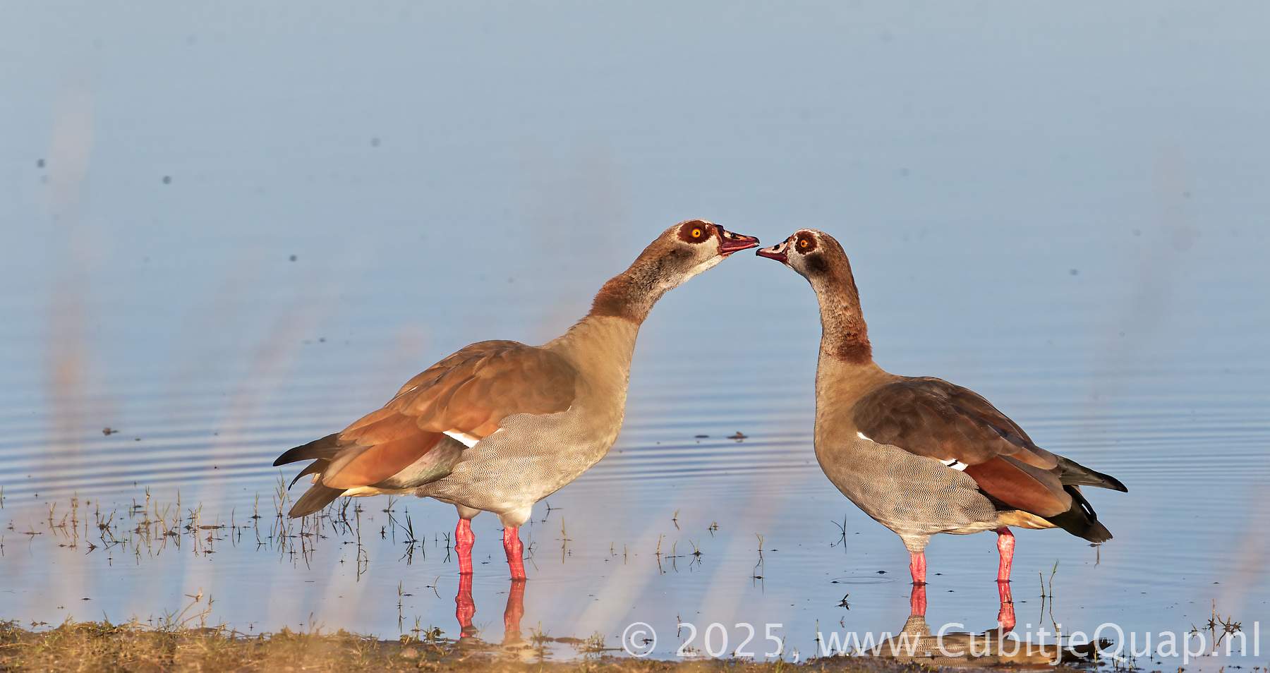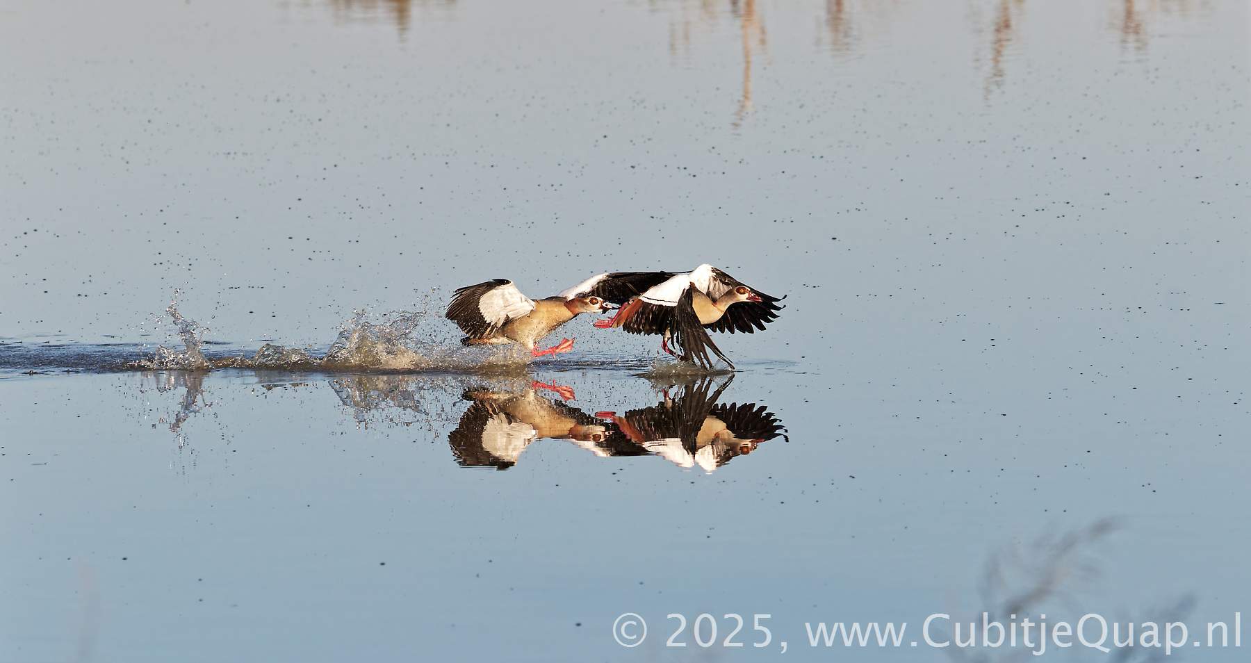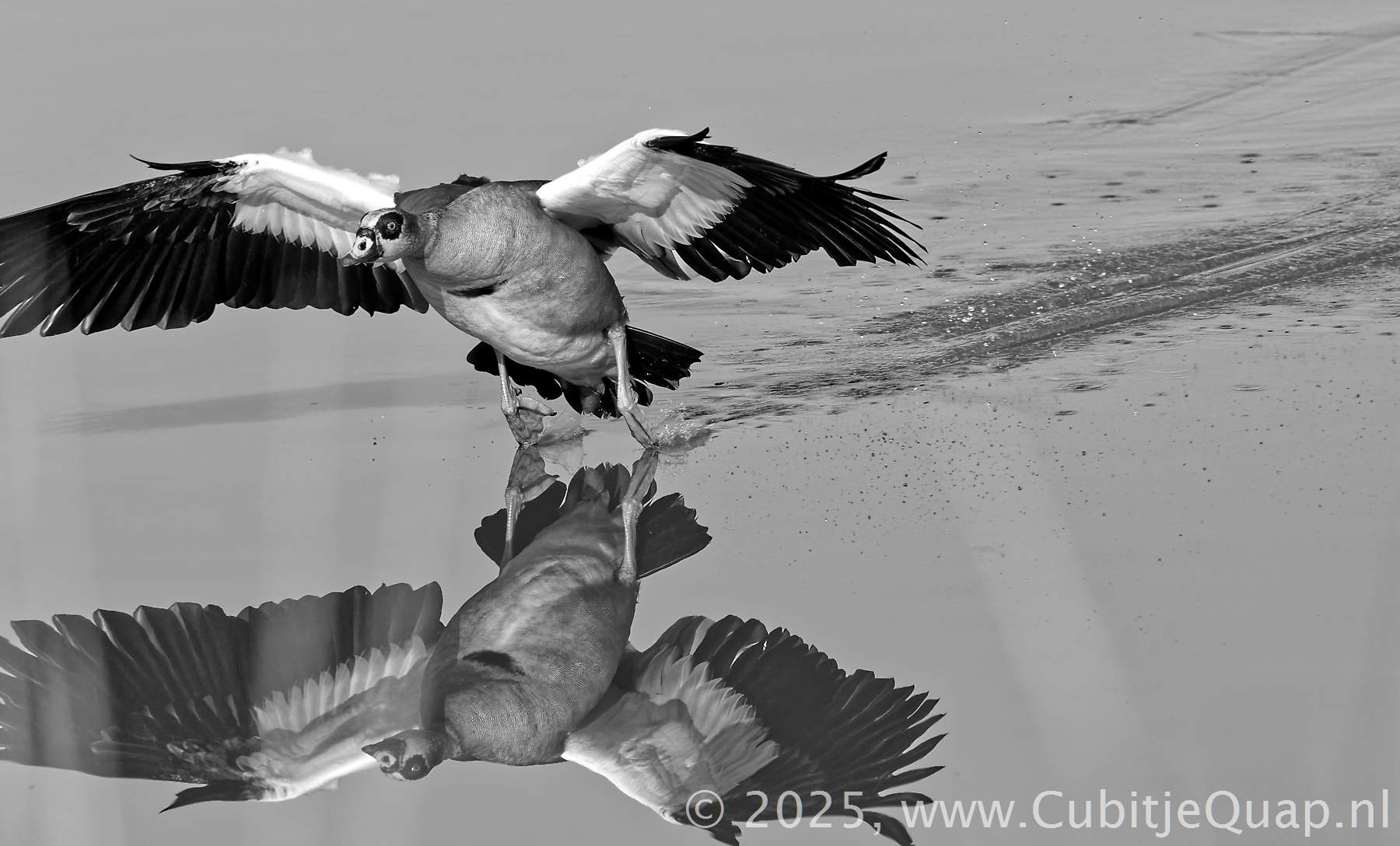 This large brown bird has a dark brown mask around the eye, and a brown patch on the breast that is distinctive in flight. Compared with South African Shelduck it has a longer neck and legs, and a thin, dark line running through the white forewing is visible in flight.