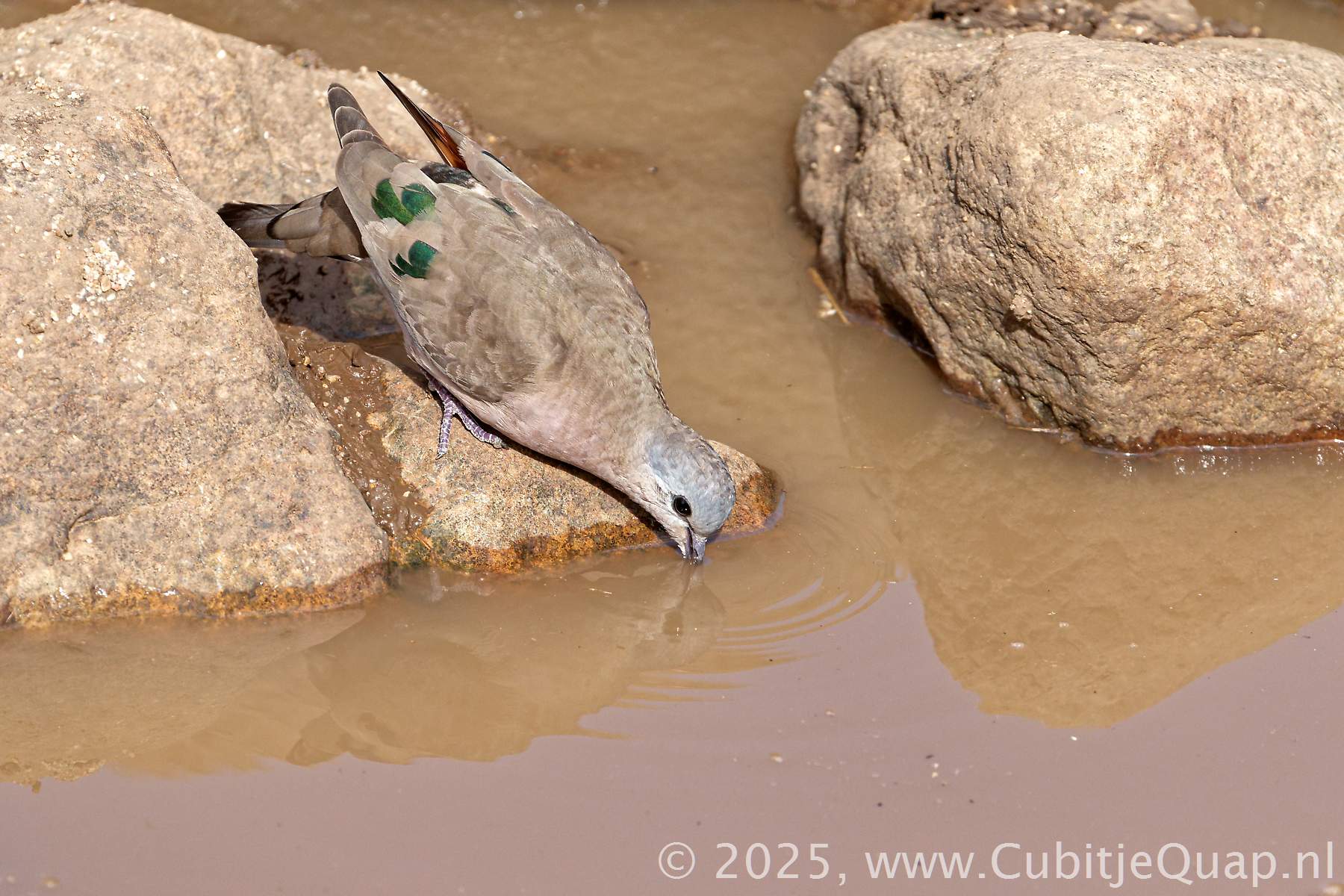 One of the most characteristic calls of the bushveld: A series of low 'du-du-du-du' notes, which descend in scale and quicken towards the end; higher pitched than the calls of Blue-spotted Wood-dove and Tambourine Dove.