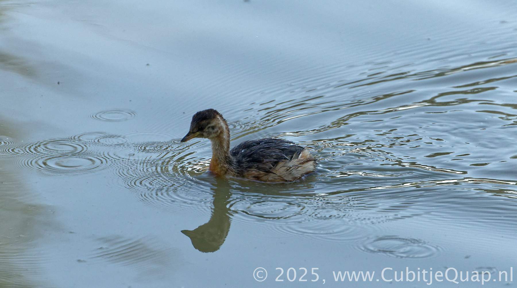 When breeding, this very small, dark grebe has chestnut sides to the neck and a diagnostic pale, creamy spot at the base of the bill. Non-breeding adult can be distinguished from Black-necked Grebe by its smaller size and dusky cheeks and throat. In flight, shows extensive white trailing edge to upper wing.