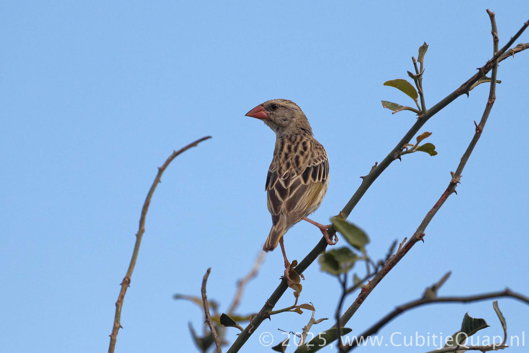 Non-breeding male and female are drab, but show red bill and legs. Breeding female has a waxy yellow bill.