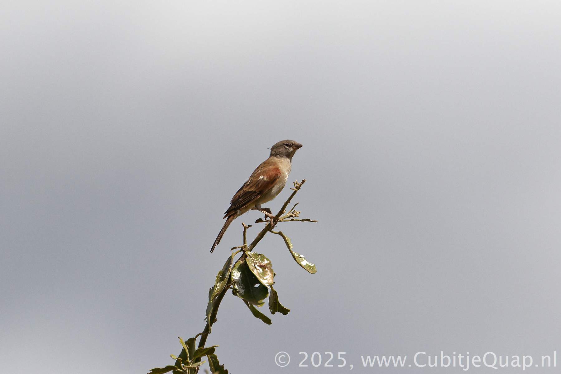 The chestnut rump, back and wings, combined with the unmarked grey head, should prevent confusion with and other sparrow except Northern Grey-headed Sparrow. Female House, Great and Cape Sparrows superficially resemble this species but all have white or buff head markings. The bill is black in breeding season, and dull yellow in winter. Slightly smaller and less robust than Northern Grey-headed Sparrow; more greyish brown on the head and has a smaller bill.