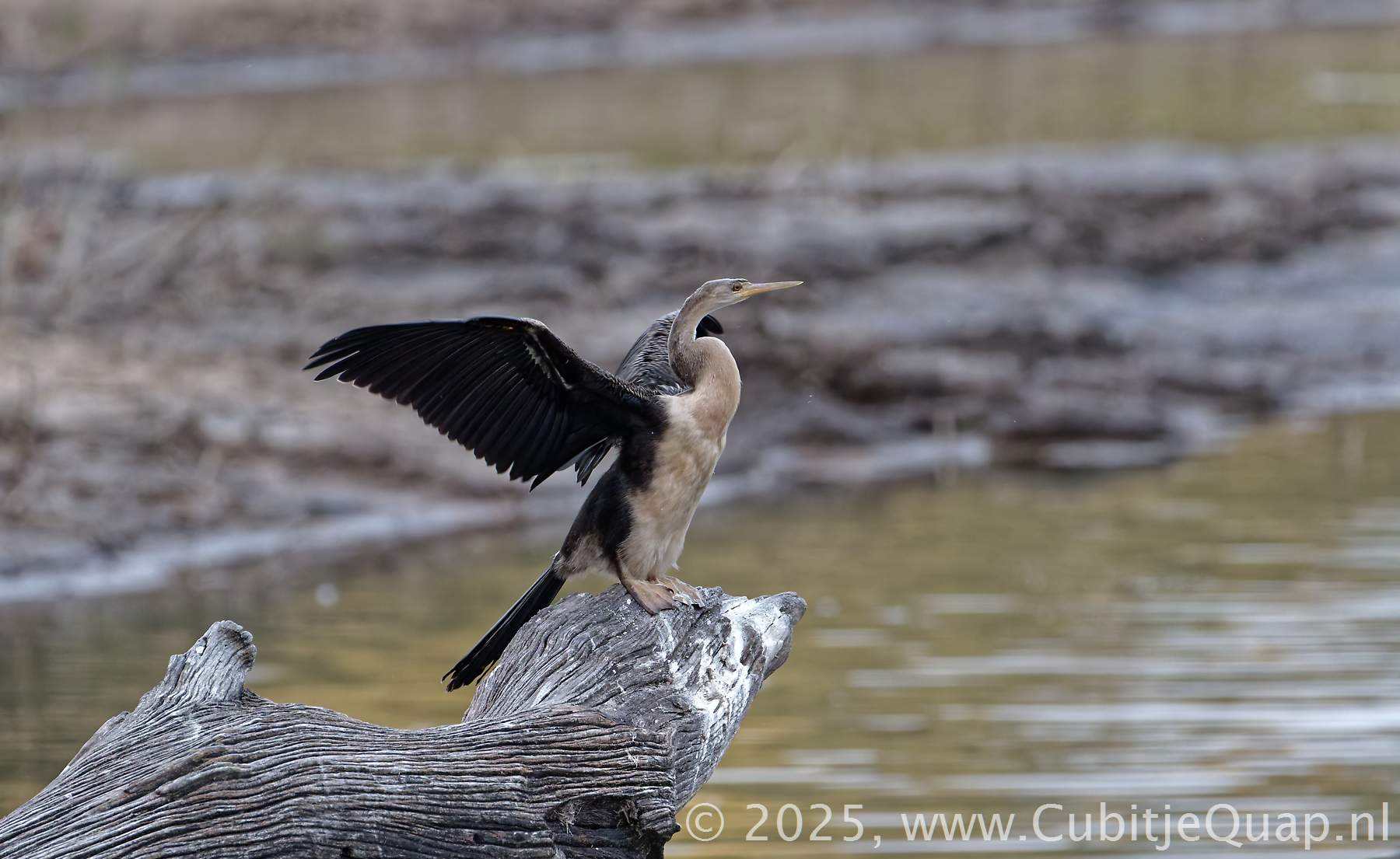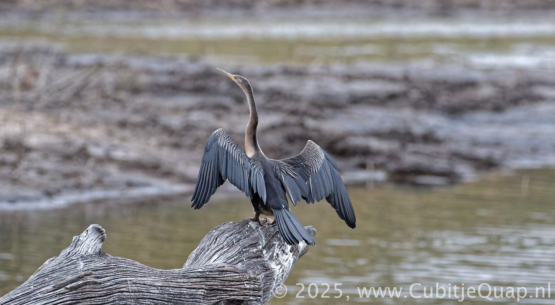 The largest cormorant of the region. Adult is glossy black with a white throat and breast, and a bright yellow patch at the base of the bill. During breeding season it has white flank patches.