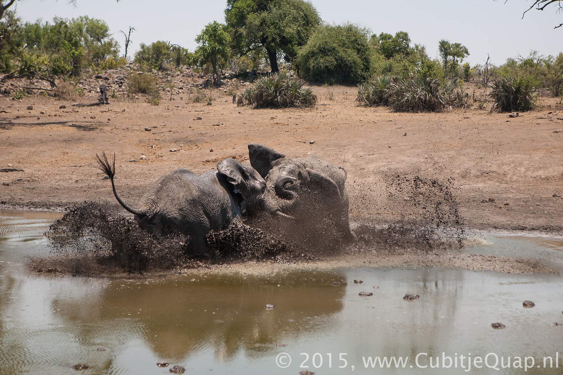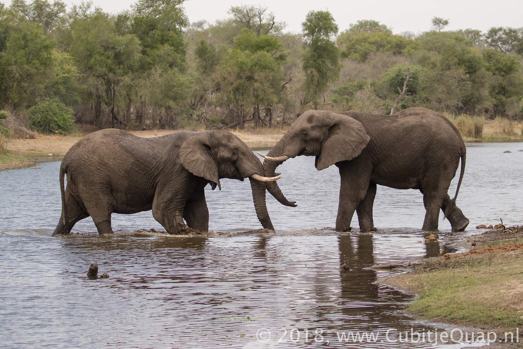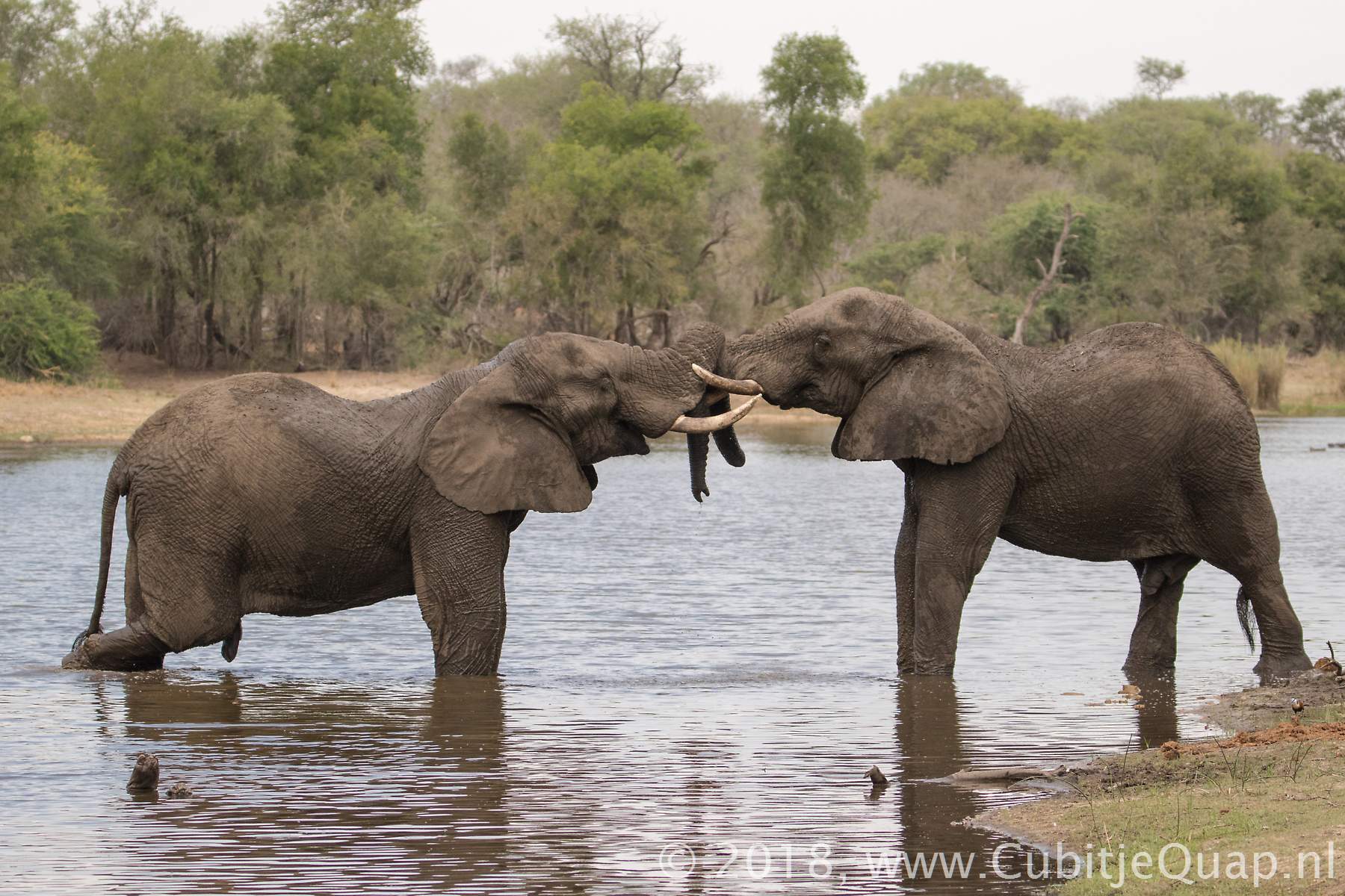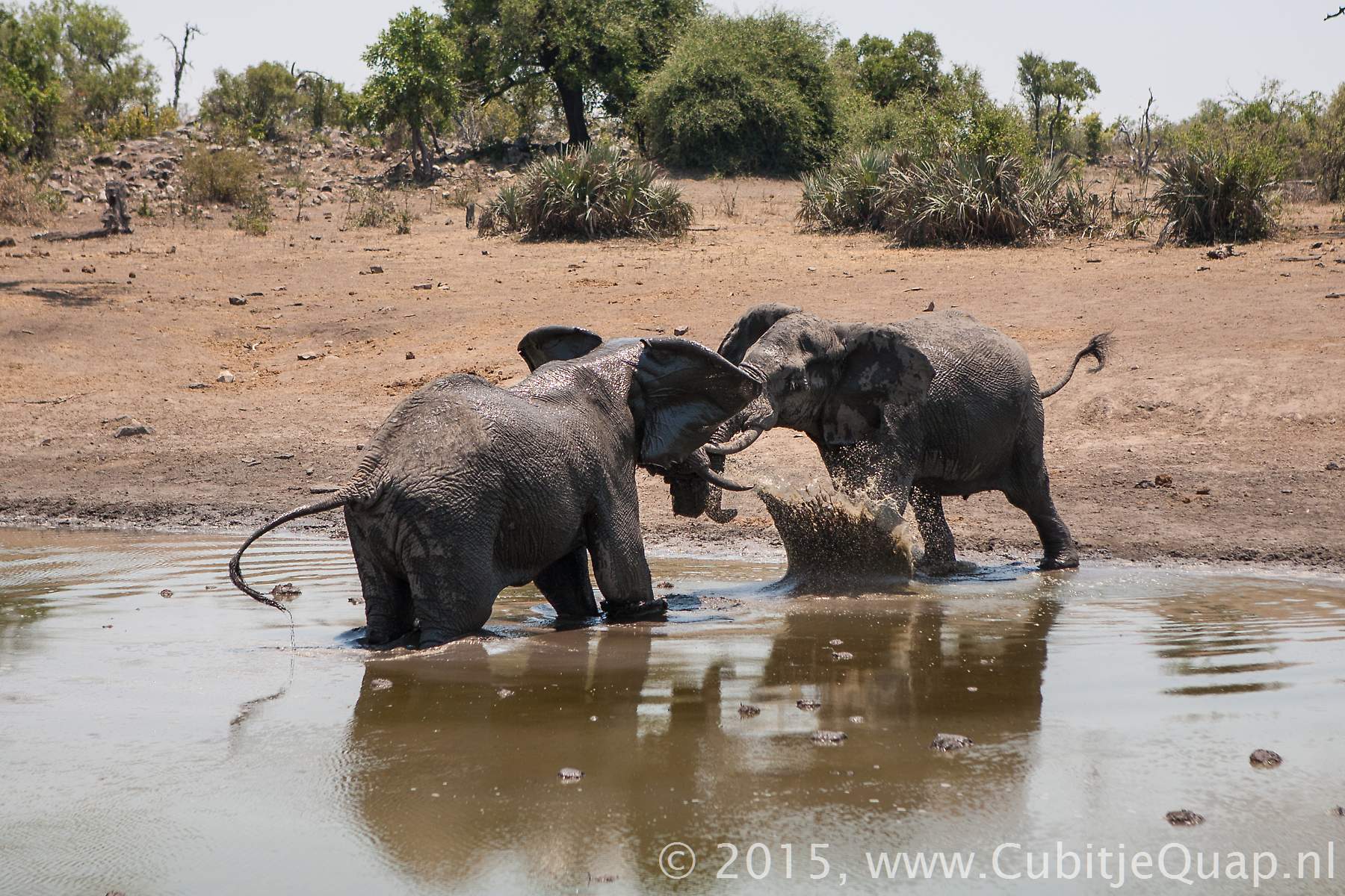 At Klopperfontein we observed a young elephant picking a fight with another elephant that did not belog to its group.