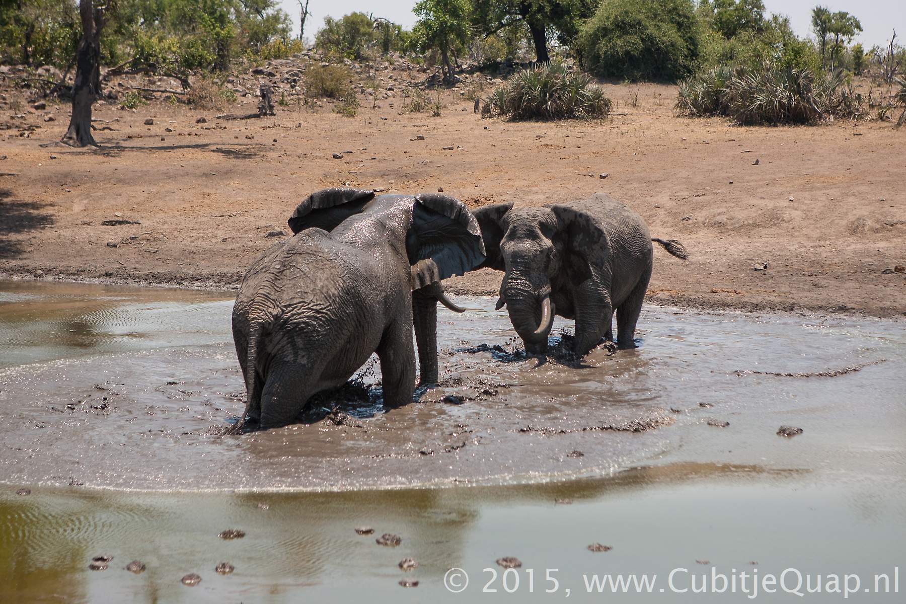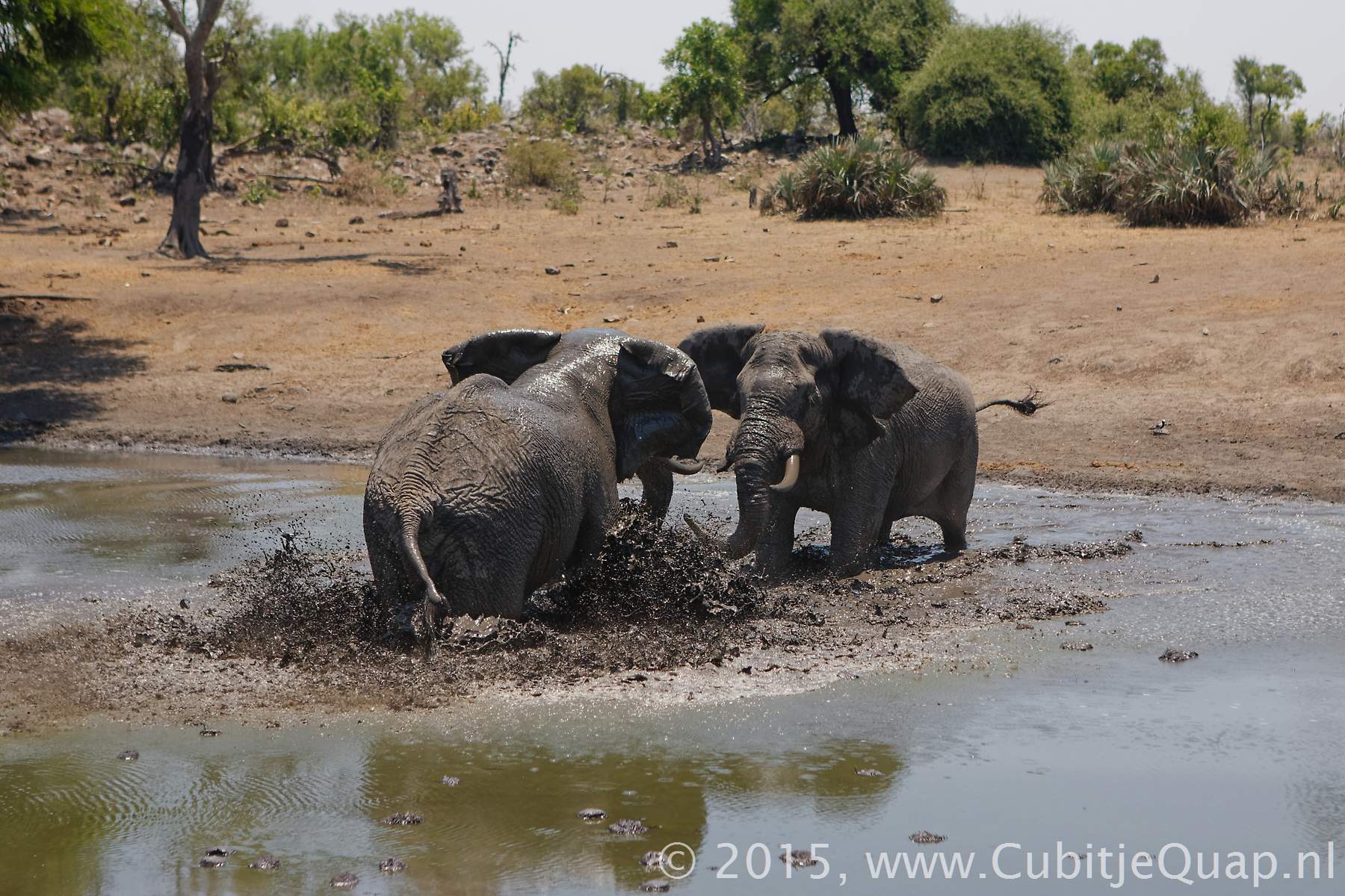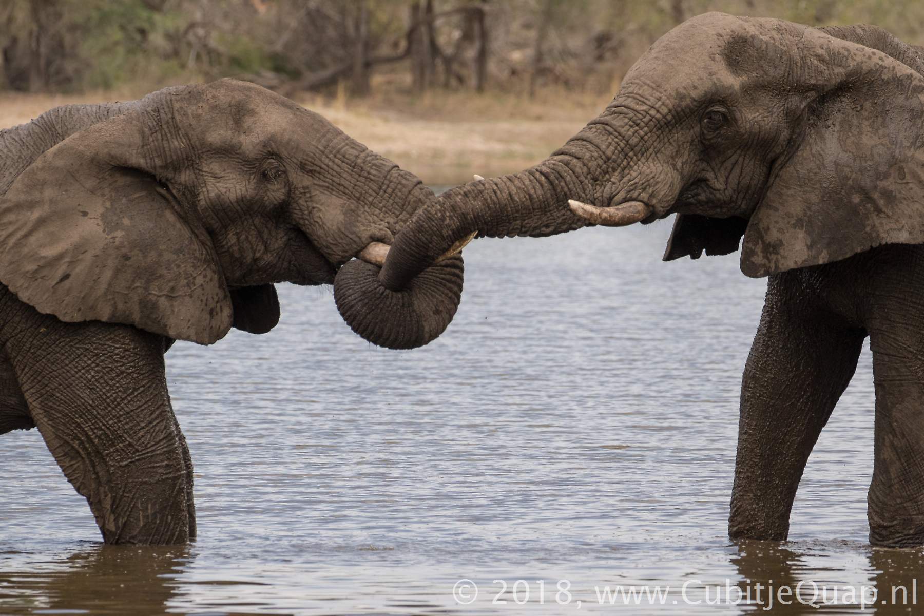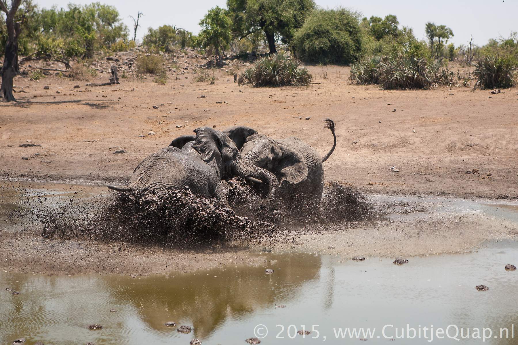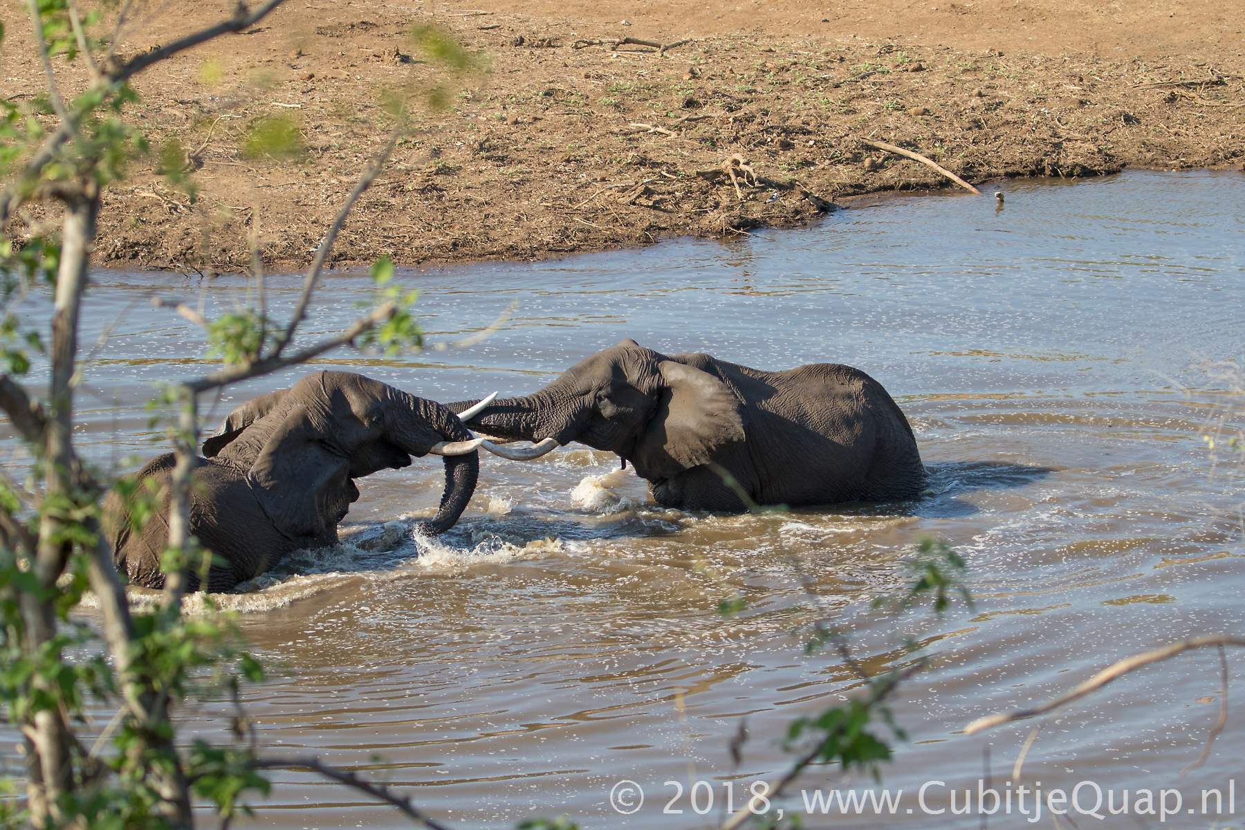 At Klopperfontein we observed a young elephant picking a fight with another elephant that did not belog to its group.