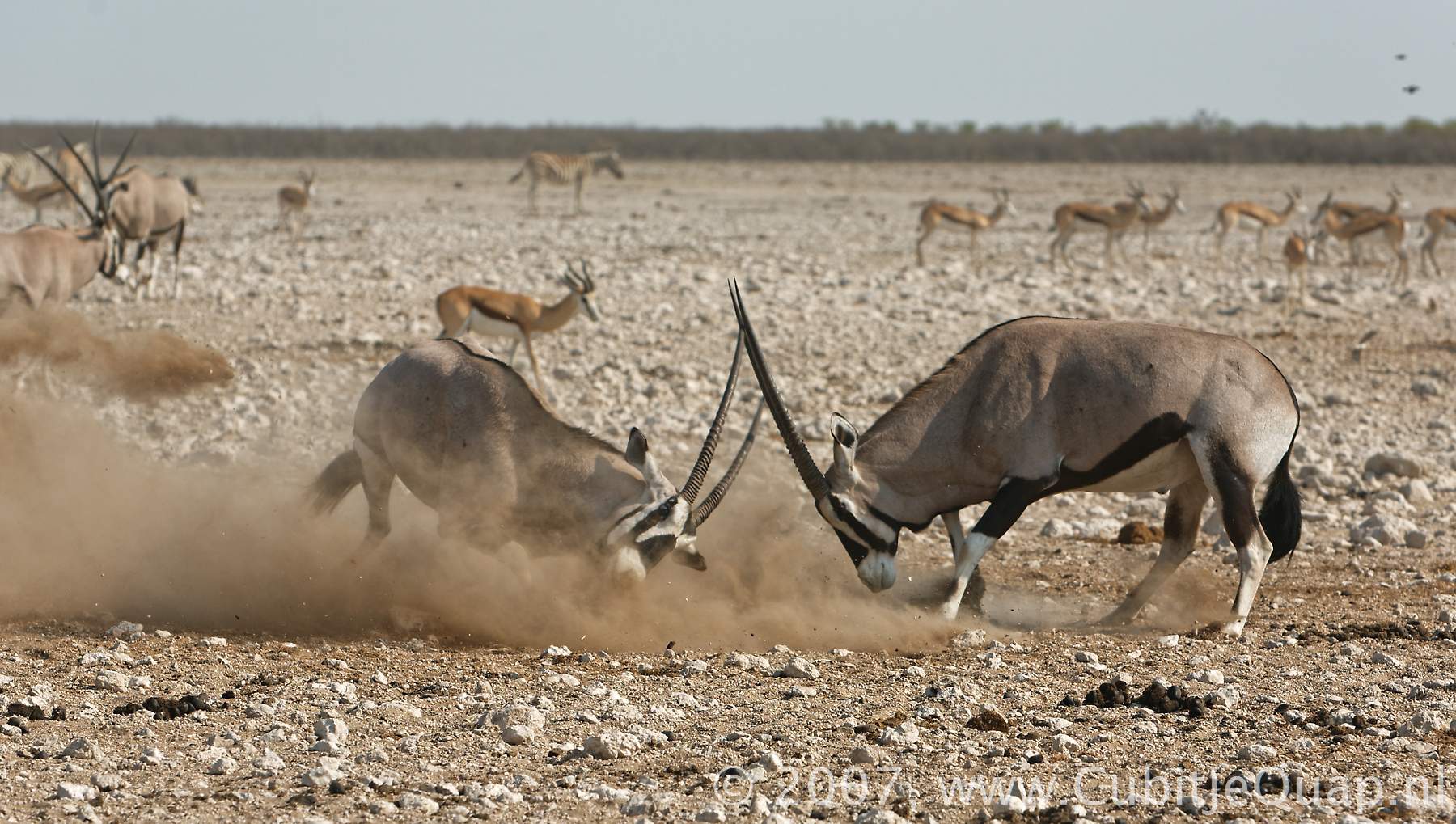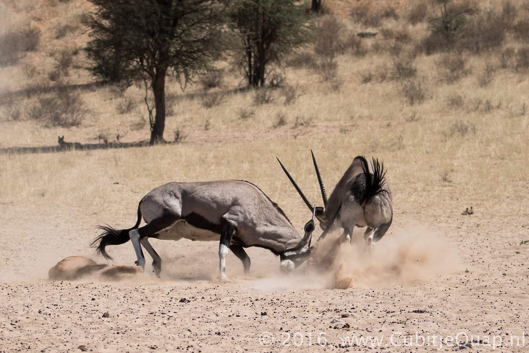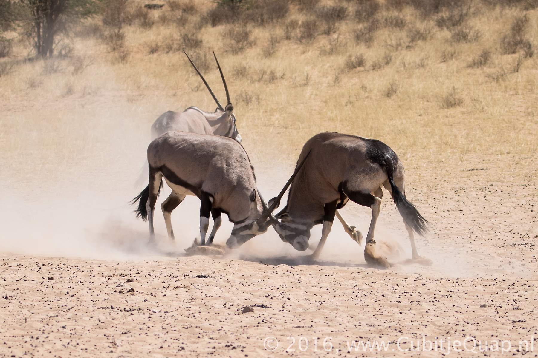 short and low in intensity. The powerfull horns of a gemsbok can cause serious damage to an opponent, therefore a ritualized