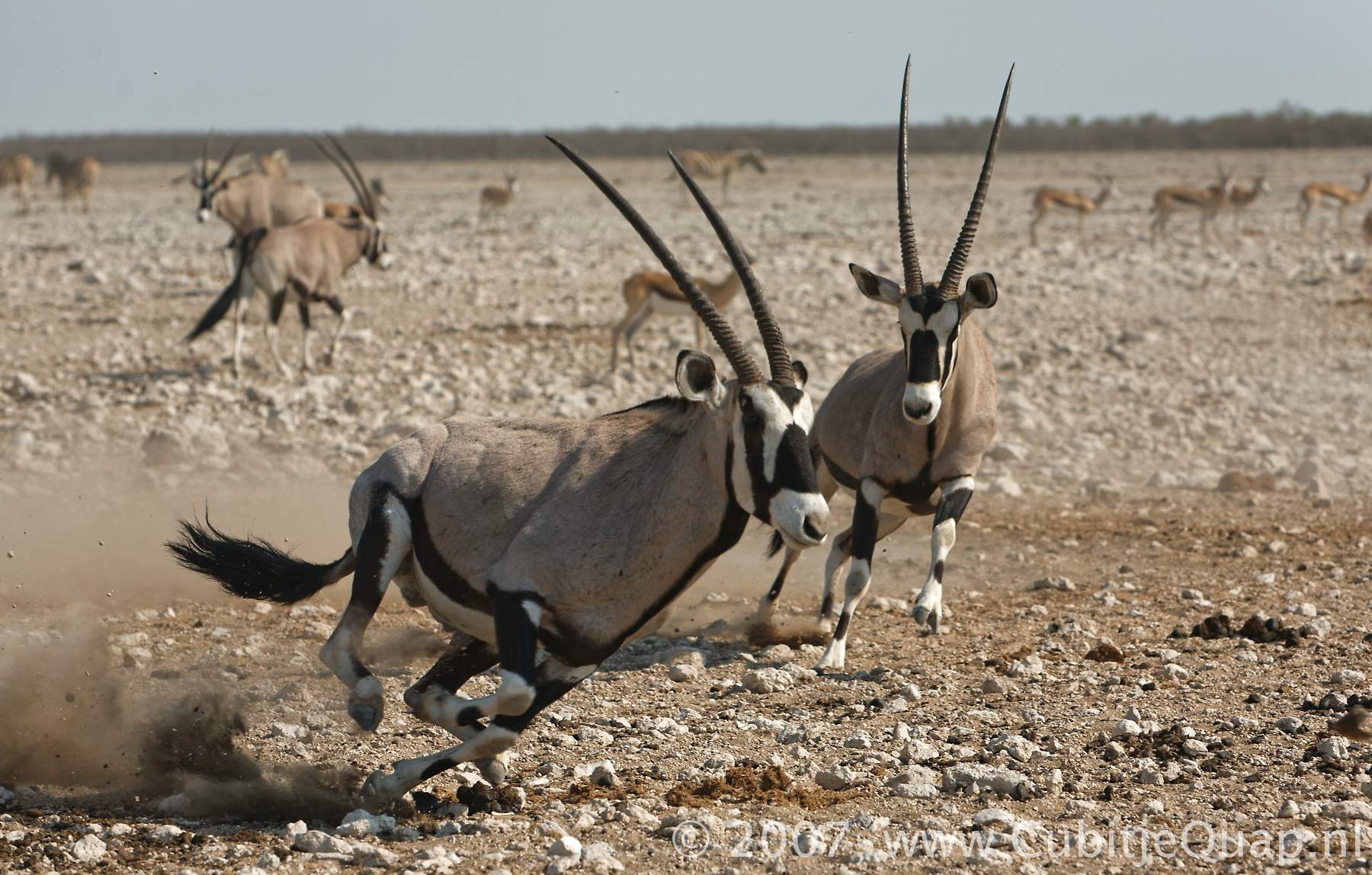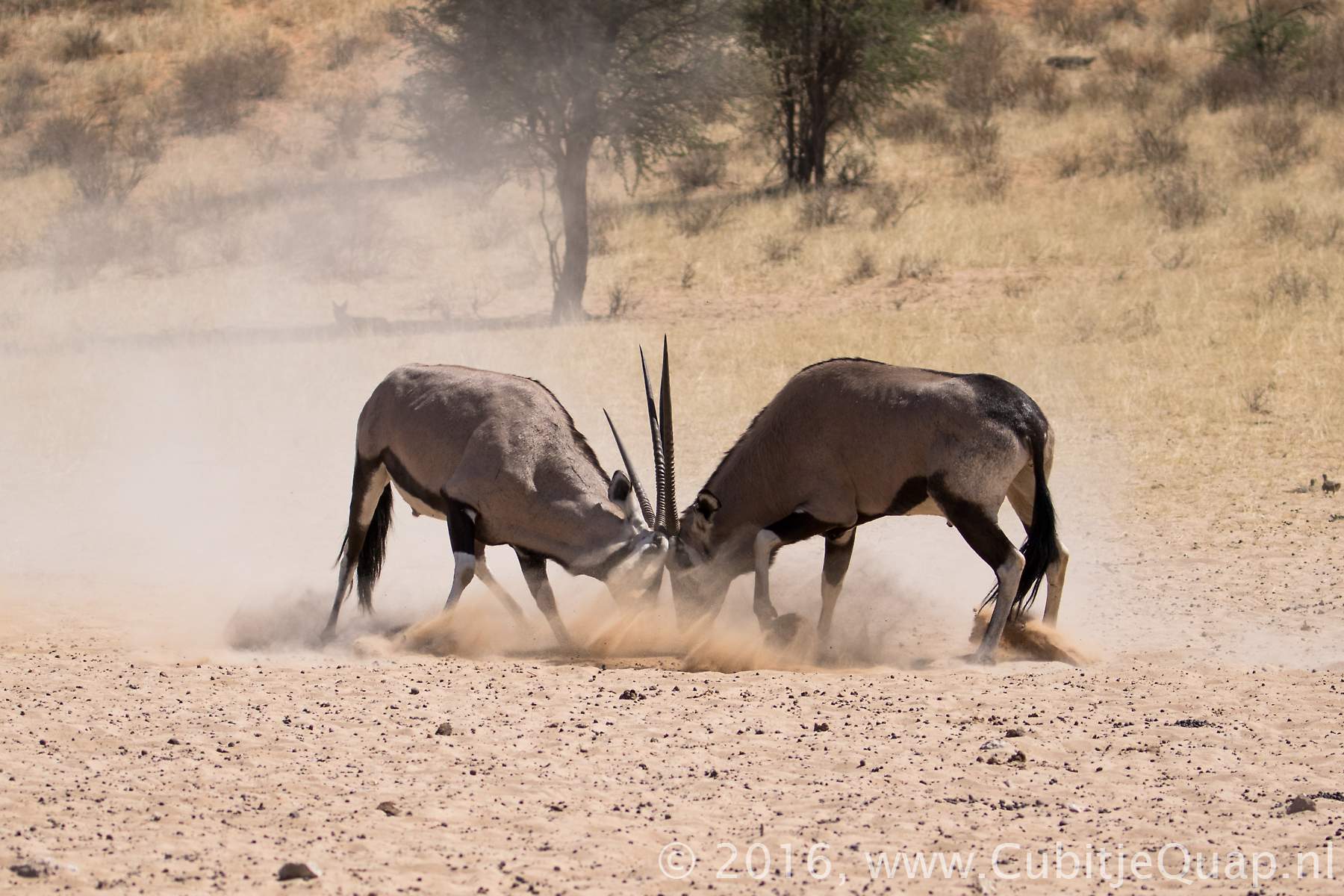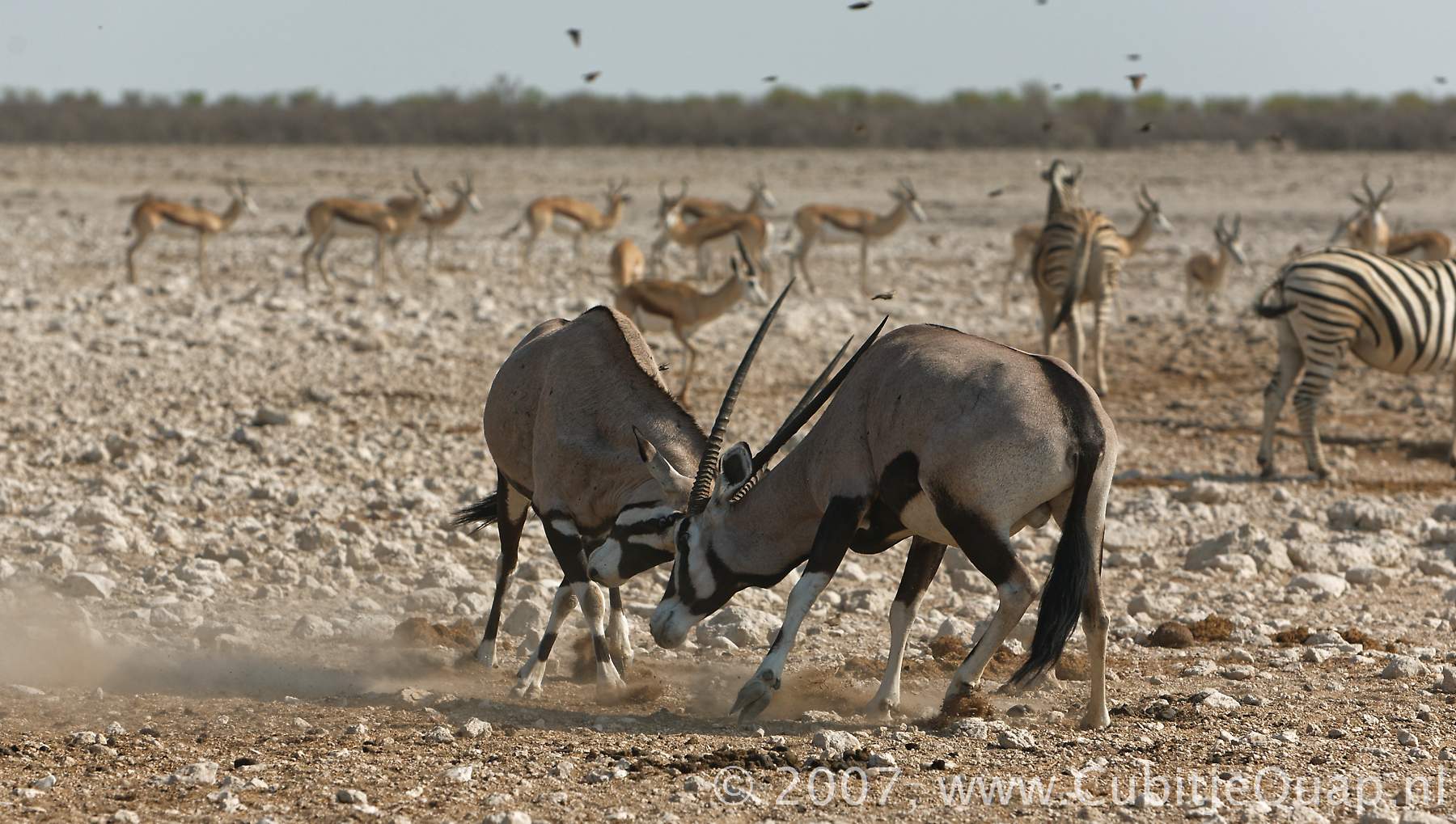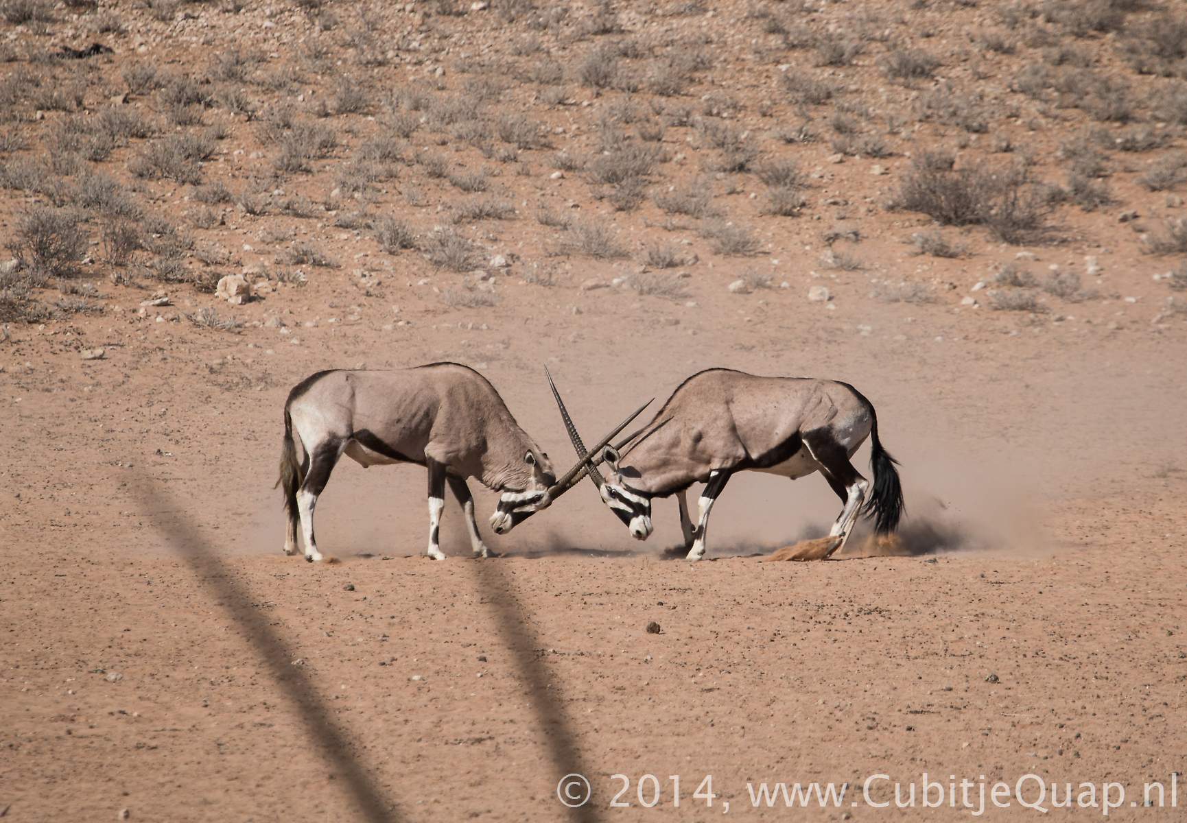 short and low in intensity. The powerfull horns of a gemsbok can cause serious damage to an opponent, therefore a ritualized