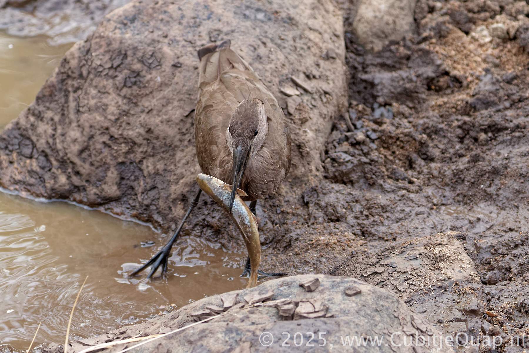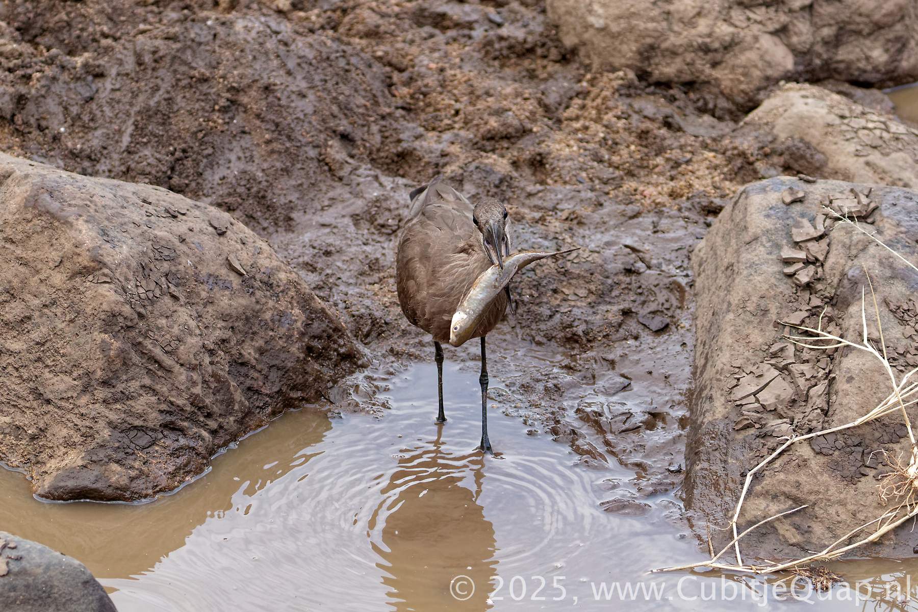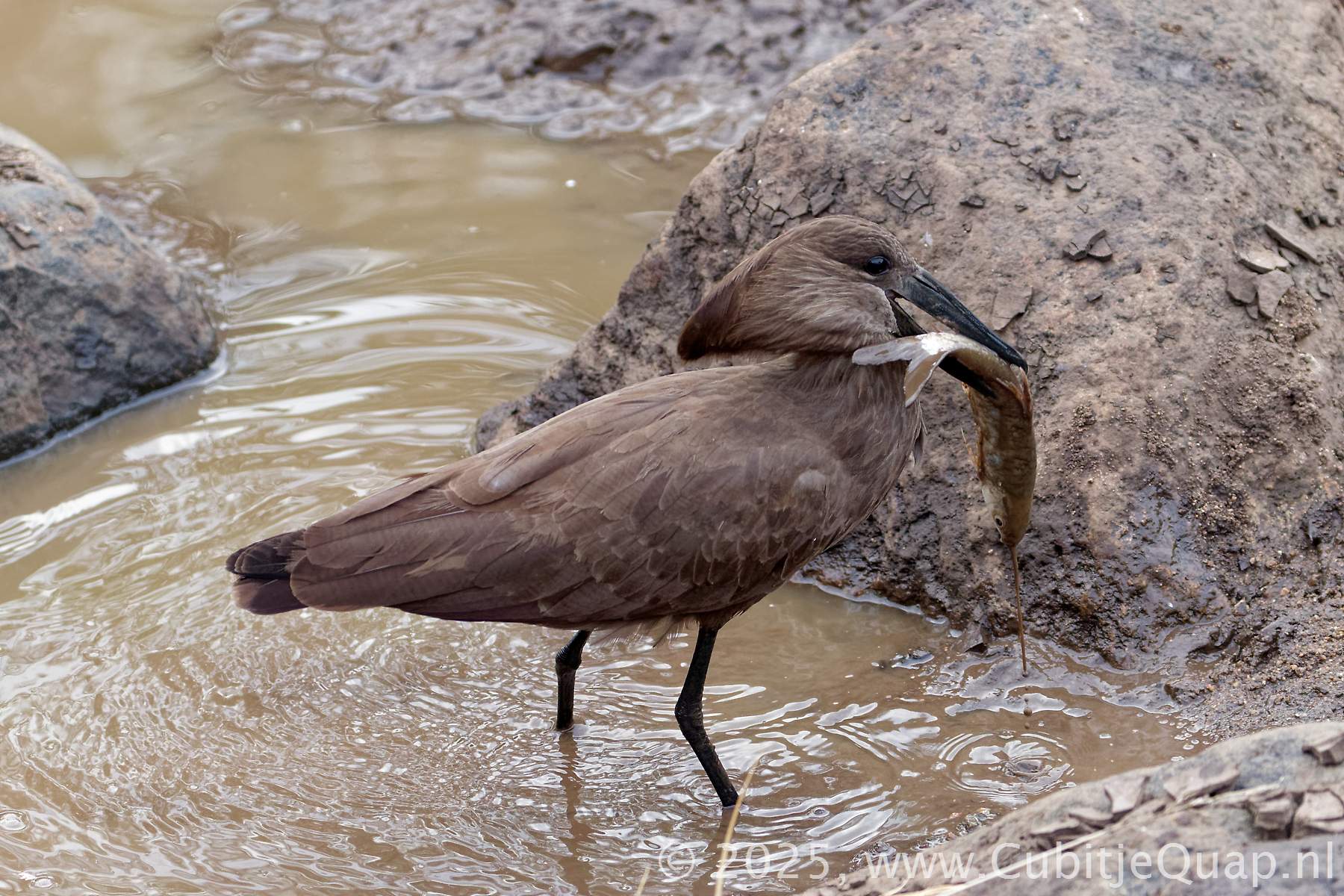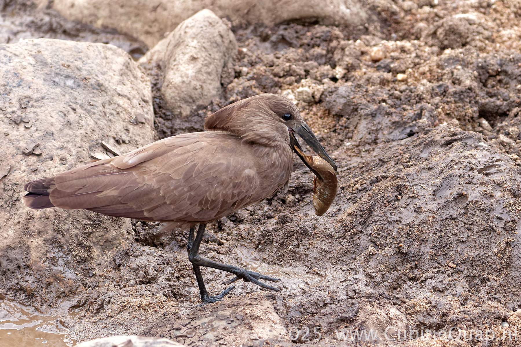 Tadpoles, frogs and fish are the main foodsource for the hamerkop, but they also eat small birds and rodents.