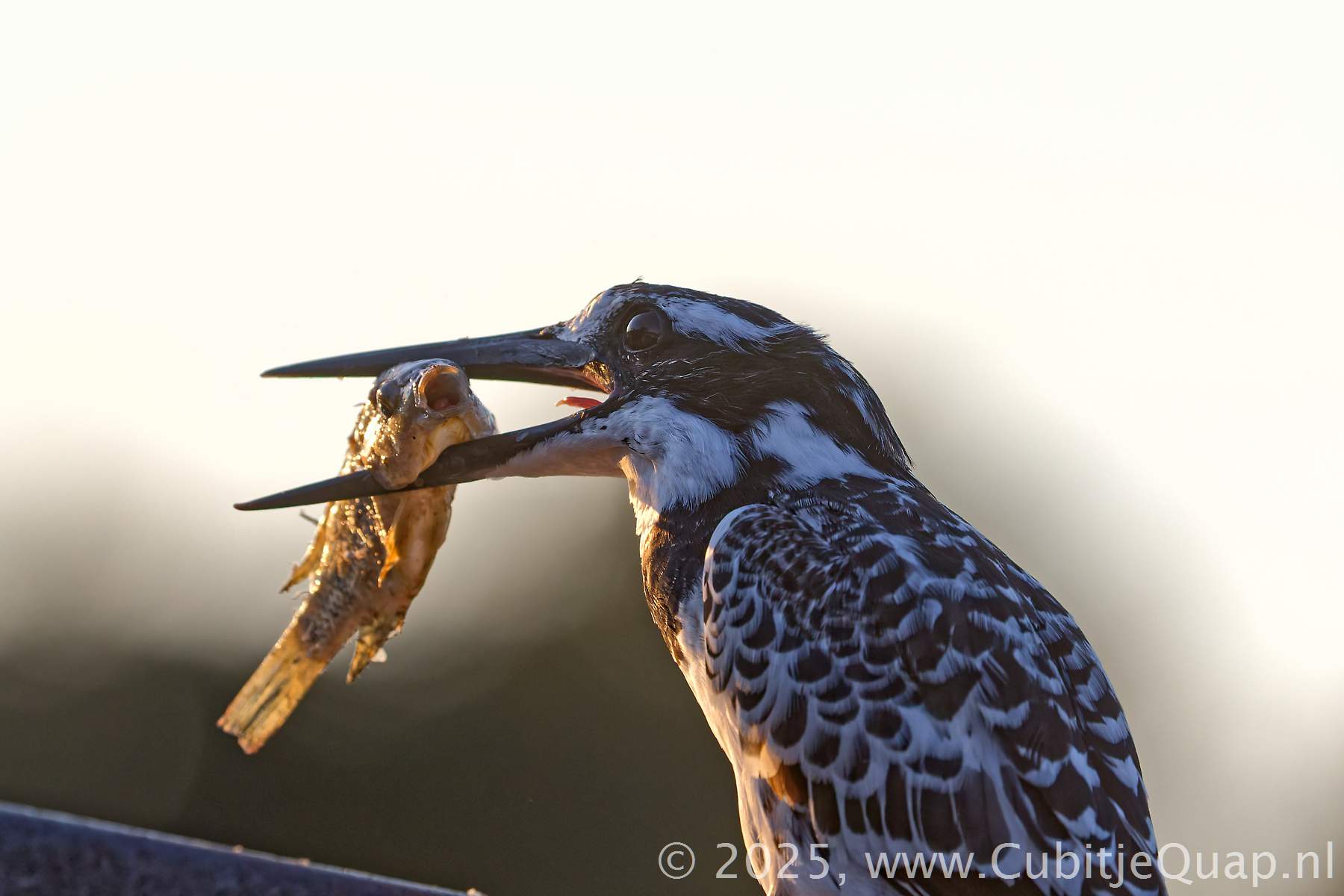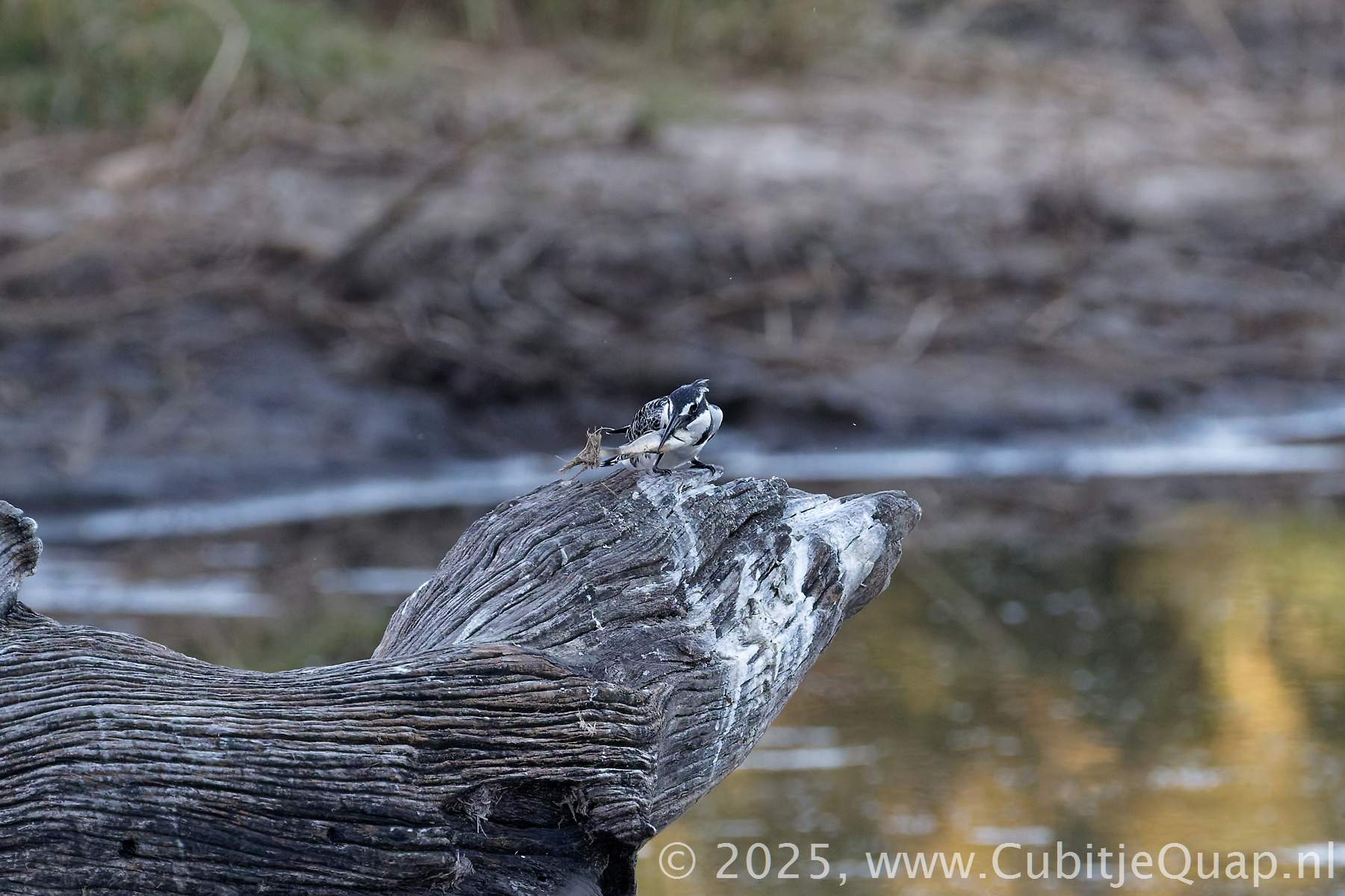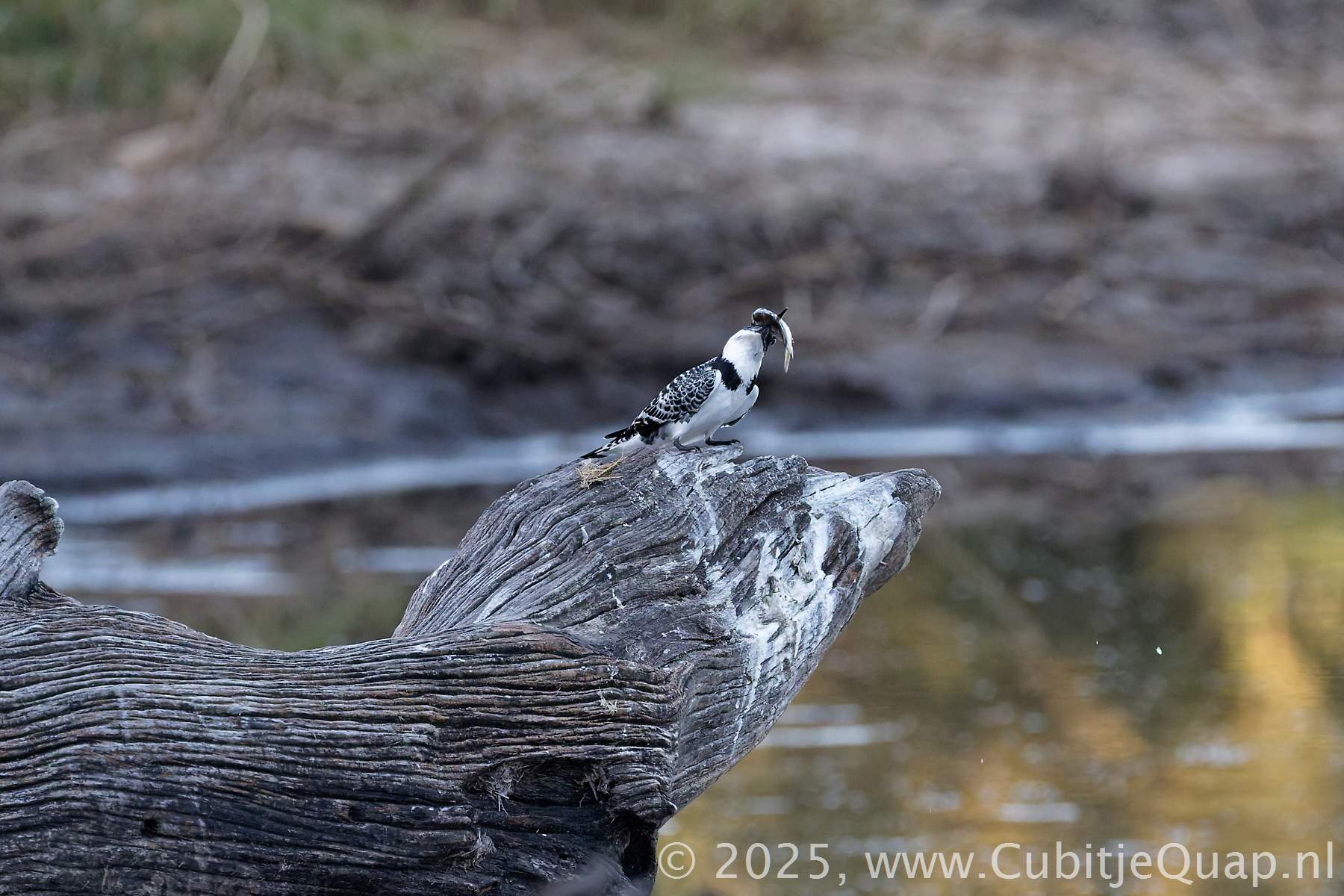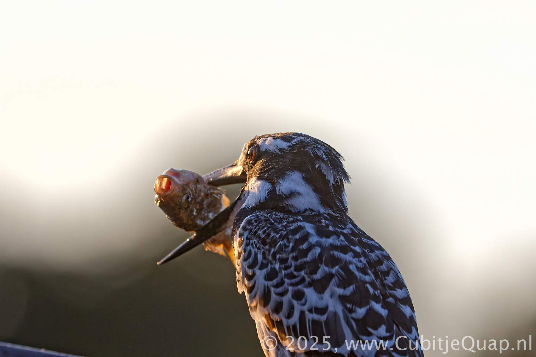 The pied kingfisher feeds mainly on fish, although it will take crustaceans and large aquatic insects such as dragonfly larvae.