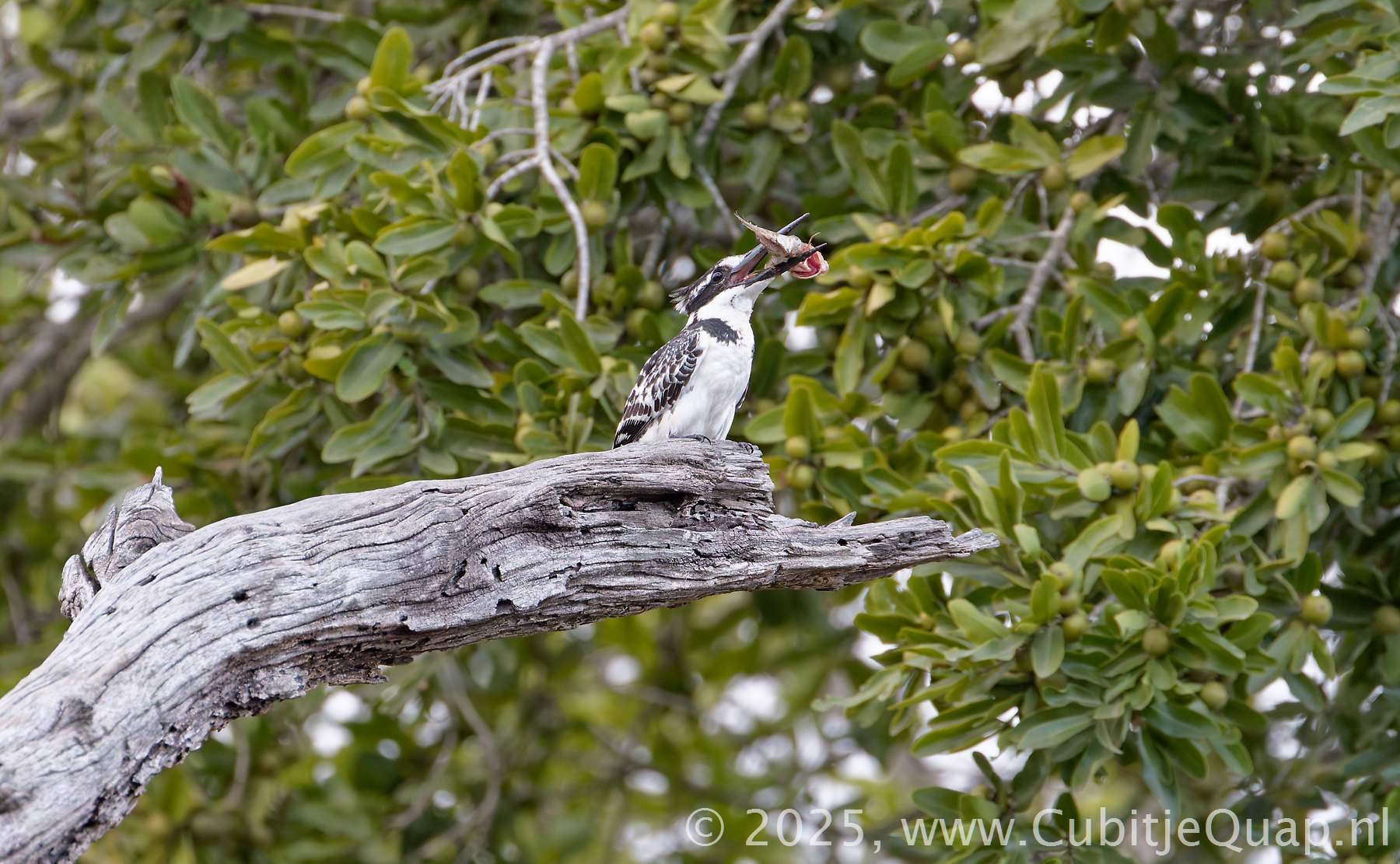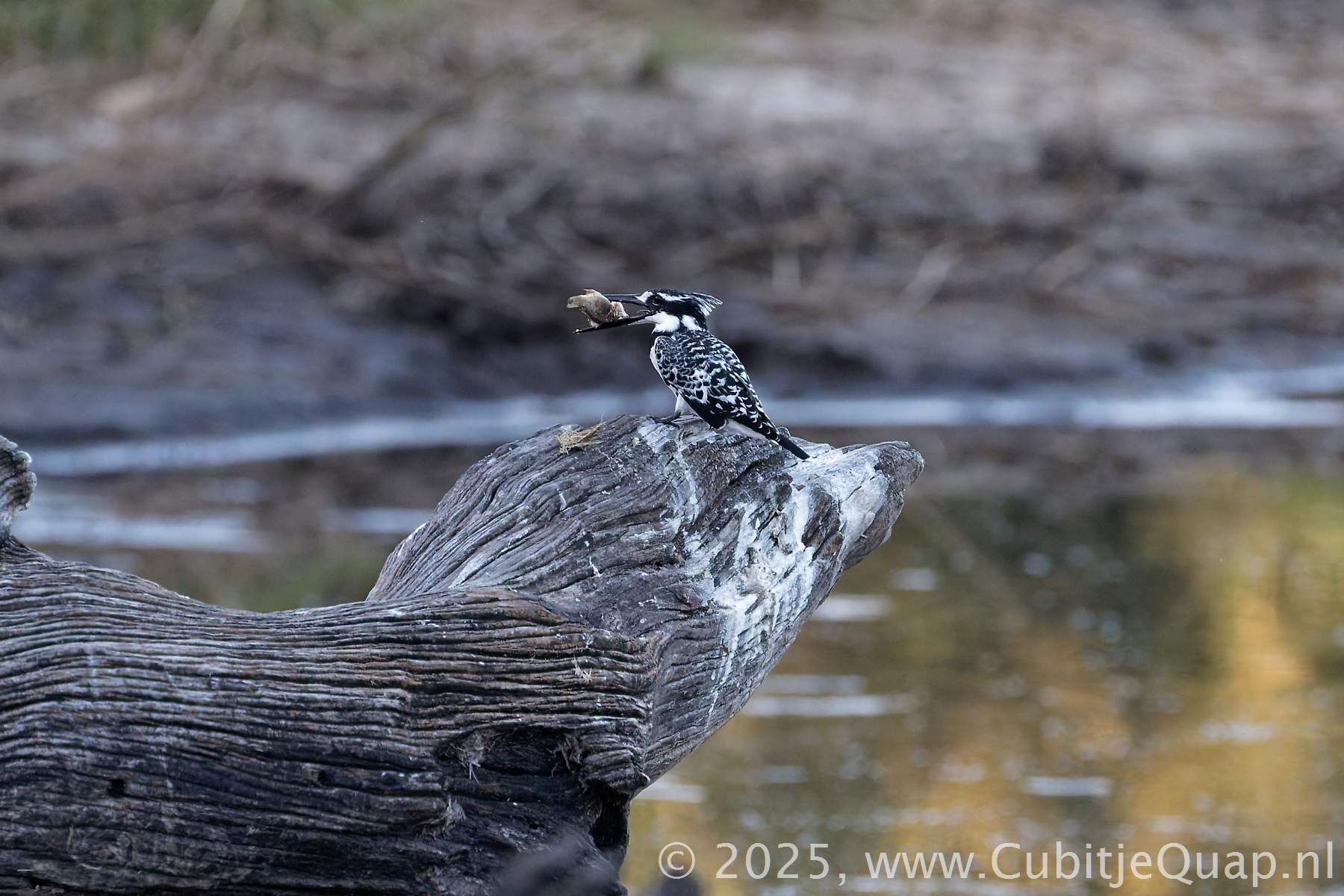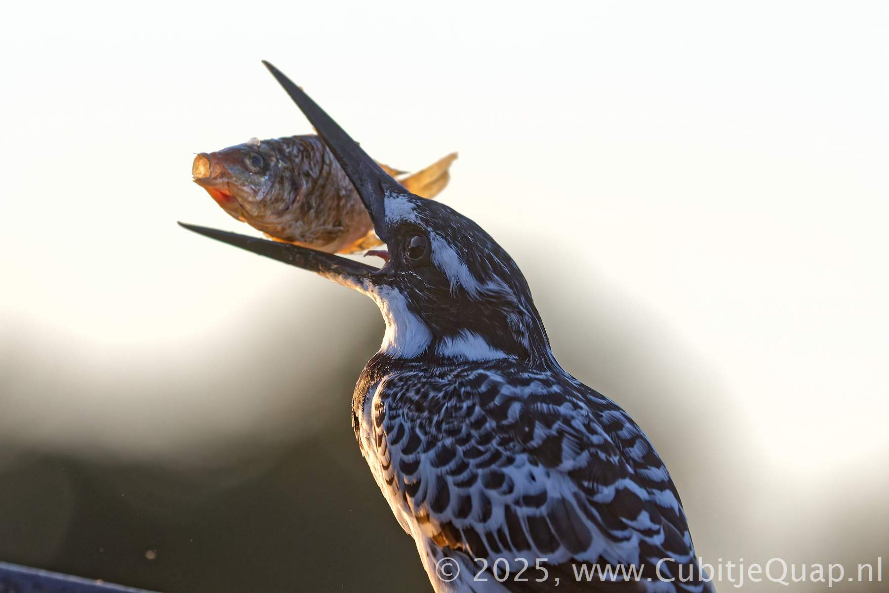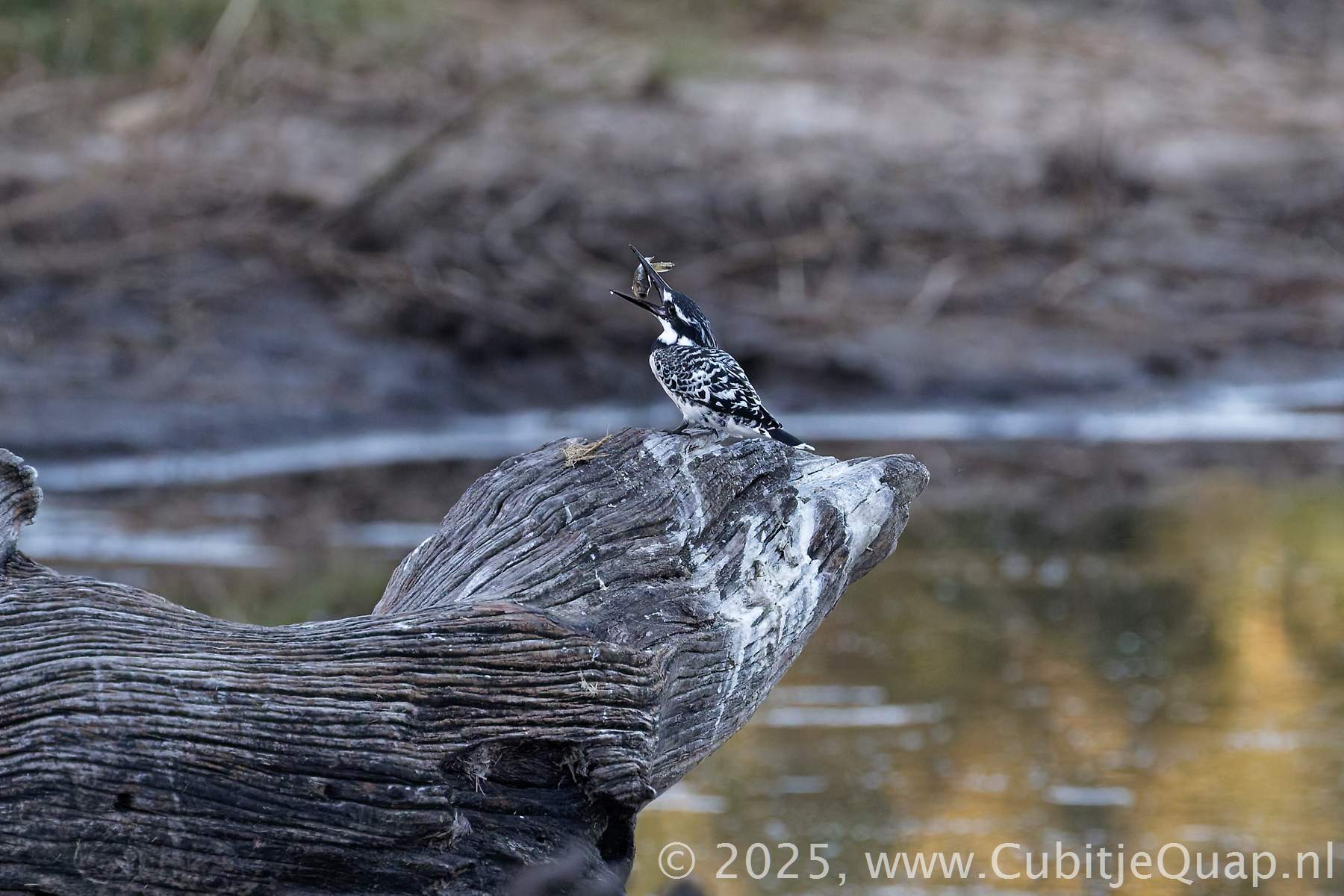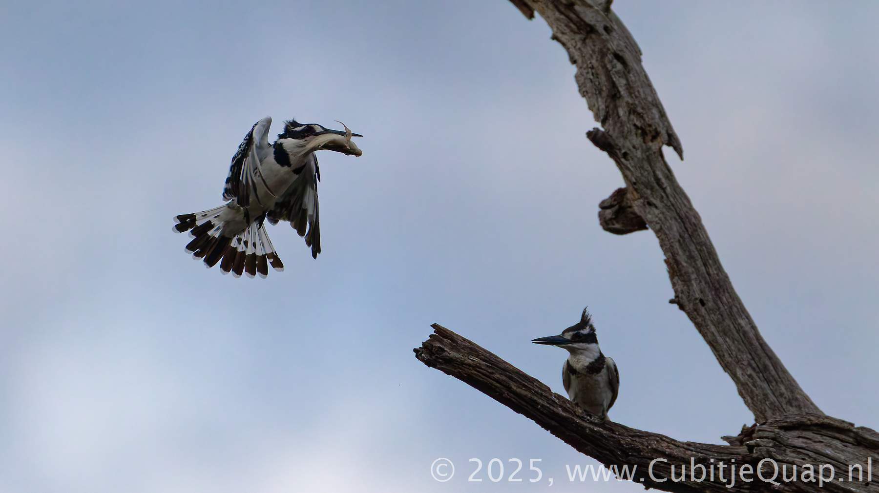 The pied kingfisher feeds mainly on fish, although it will take crustaceans and large aquatic insects such as dragonfly larvae.