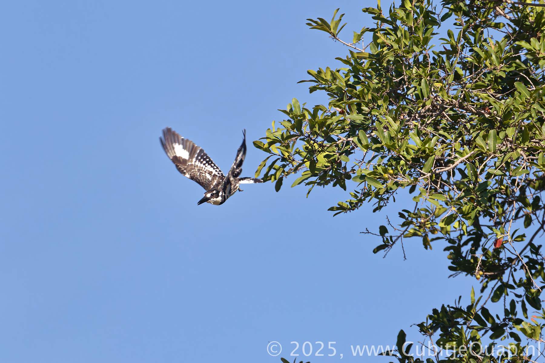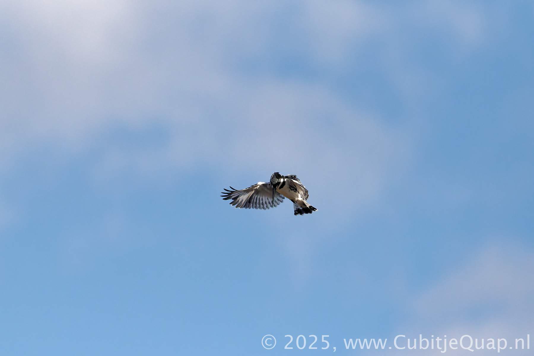 The pied kingfisher feeds mainly on fish, although it will take crustaceans and large aquatic insects such as dragonfly larvae.