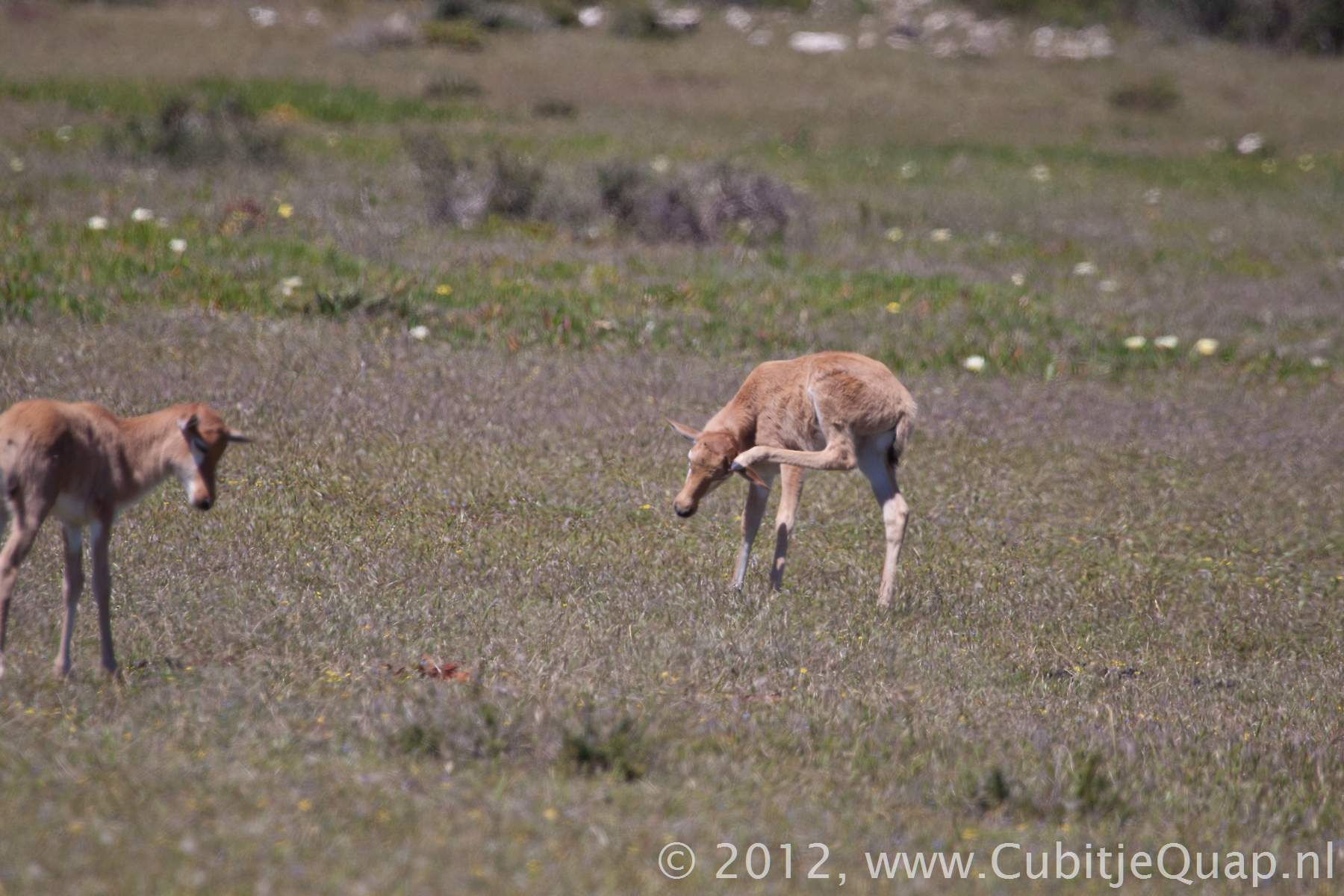 The reserve has 86 mammal species. Most notable are the rare bontebok and Cape mountain zebra, as well as eland, grey rhebuck, baboon, yellow mongoose, caracal and the occasional leopard.