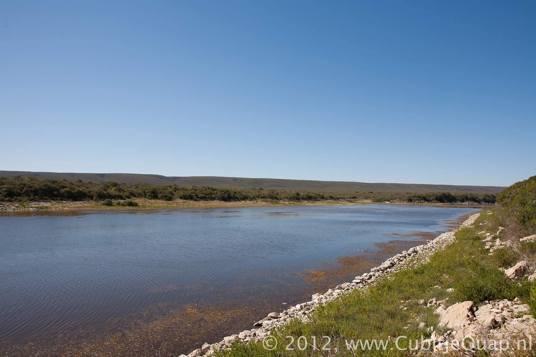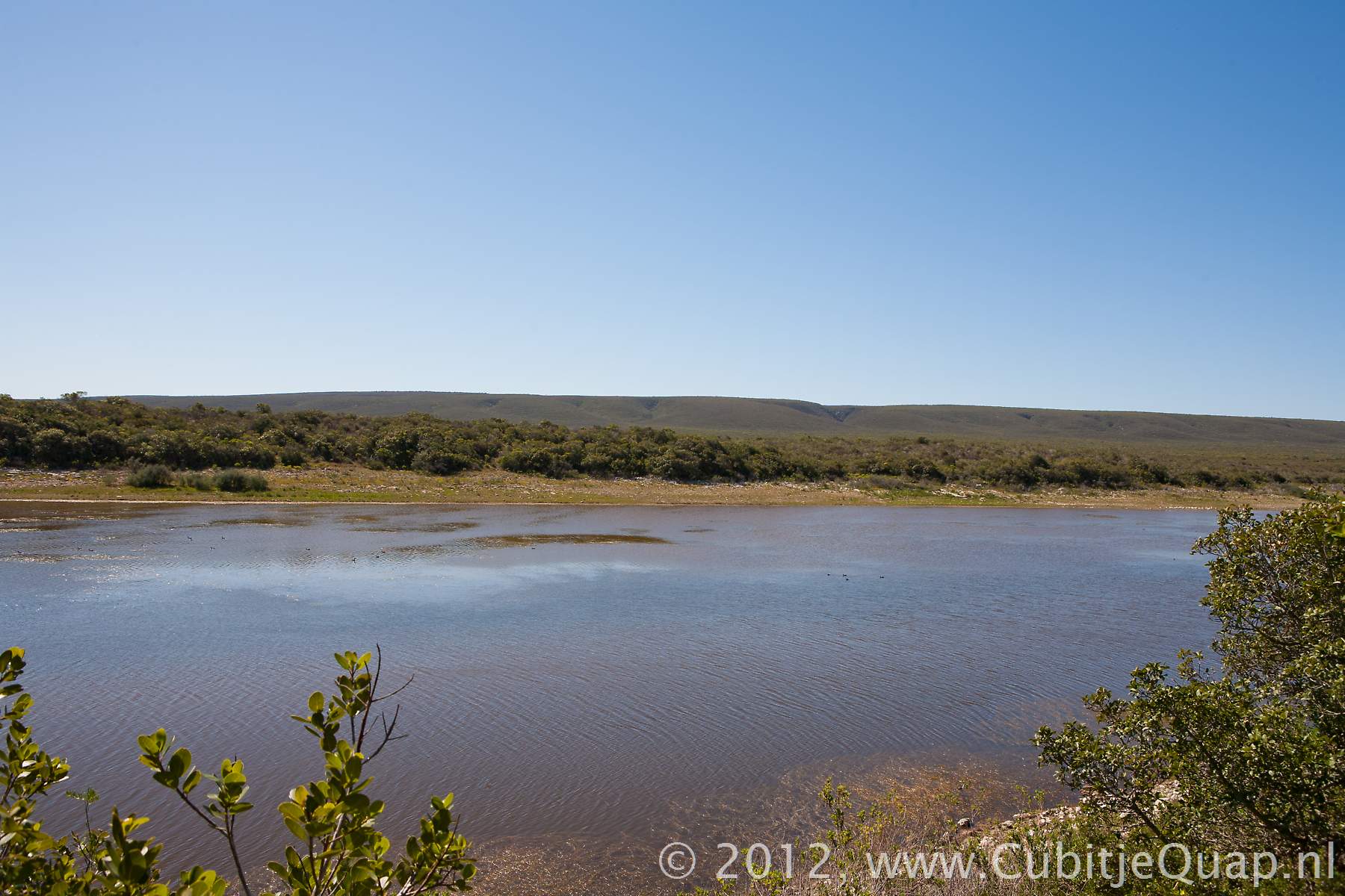 De Hoop vlei is a landlocked coastal lake that was formed when the mouth of the Soutriver was blocked by sandbars. Currently 2,5 kilometers of mobile sand dunes separate the vlei from the ocean. Both sub-surface springs and the Sout- and Potteberg rivers form the watersources for the lake.