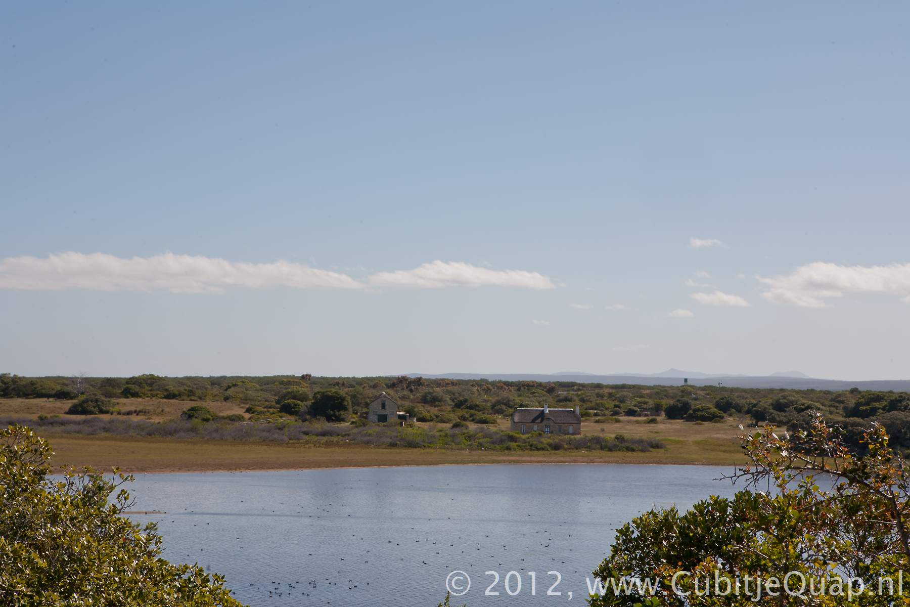 Walking along the cliffs, overlooking the vlei, it is easy to spot the sandstone buildings on the opposite side of the vlei. These are known as "The Melkkamer" (the milkhouse) and they once formed the center of the farm "The Hoop". The buildings were constructed between 1872 and 1907 and the property has been in use as a farm until 1984. At that time the land was expropriated by the government as a military testing ground. Today, the buildings have been restored and form part of the De Hoop Collection.