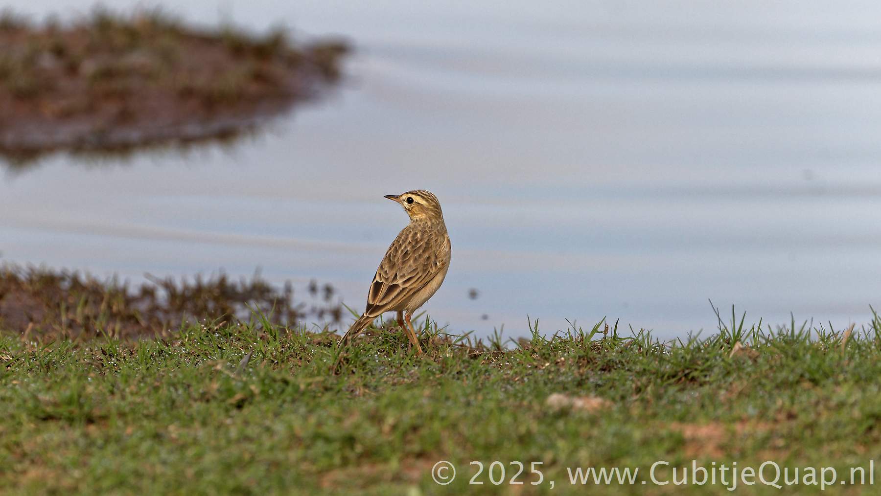 Display flight and song distinguish it from all species except Mountain Pipit, from which it differs by its call, its white (not buffy) outer tail feathers and the yellow (not pink) base to its lower mandible. It may be told from Long-billed Pipit by its bolder facial markings and breast streaking, and the white (not buff) outer tail feathers.