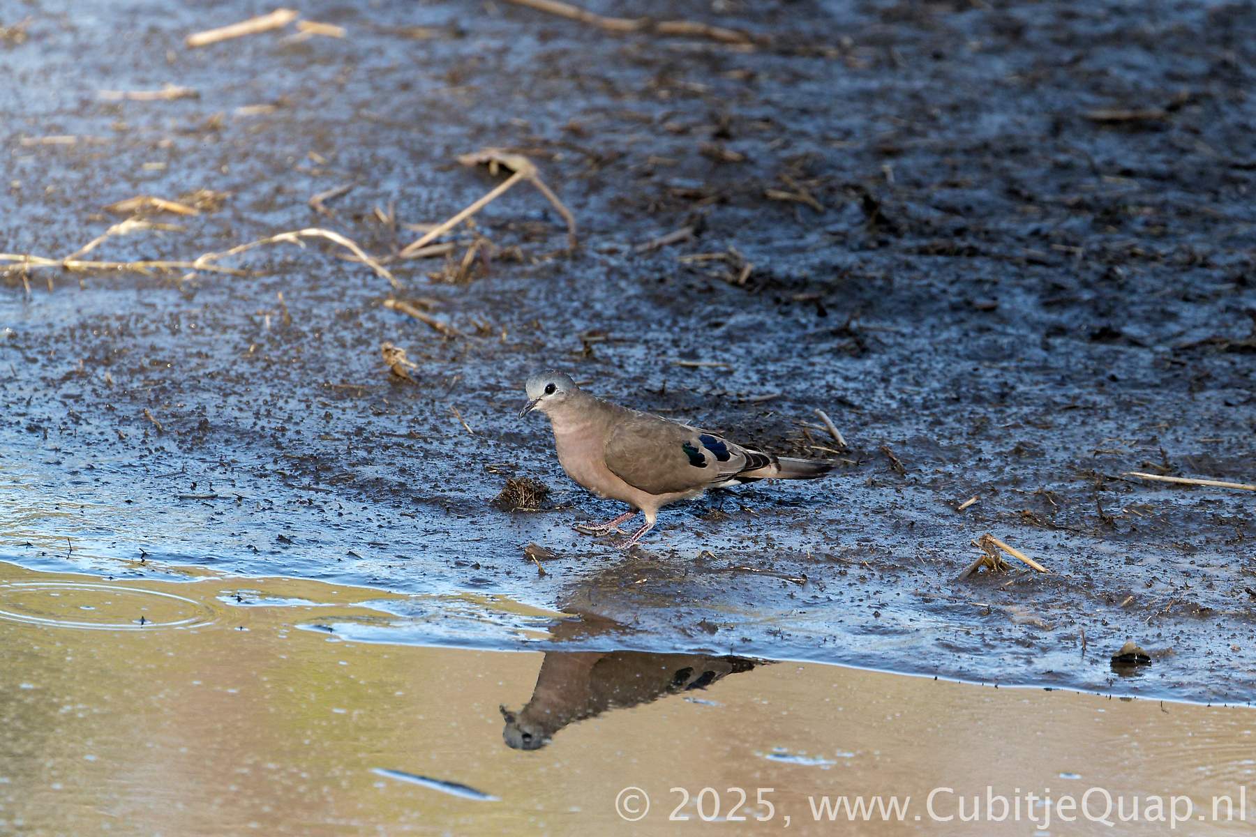 One of the most characteristic calls of the bushveld: A series of low 'du-du-du-du' notes, which descend in scale and quicken towards the end; higher pitched than the calls of Blue-spotted Wood-dove and Tambourine Dove.