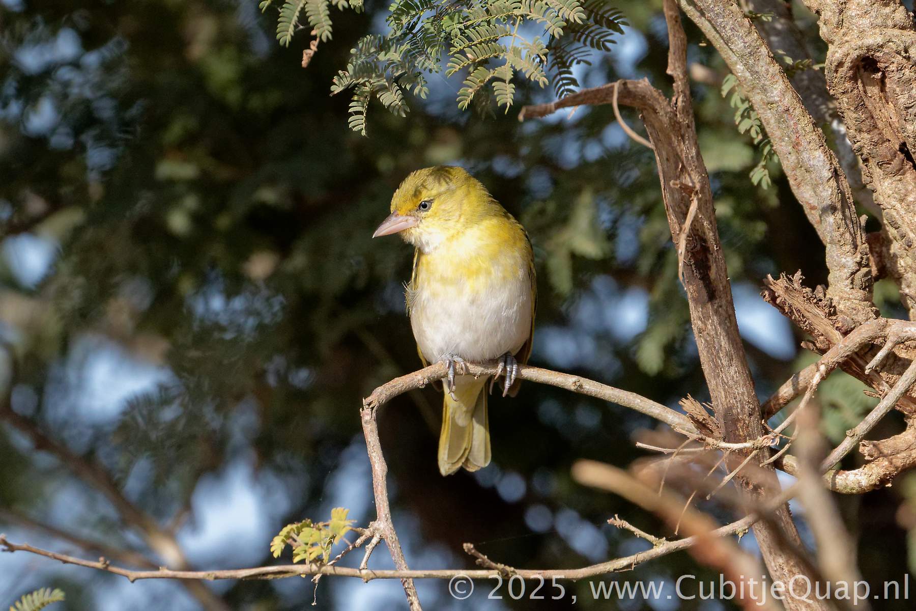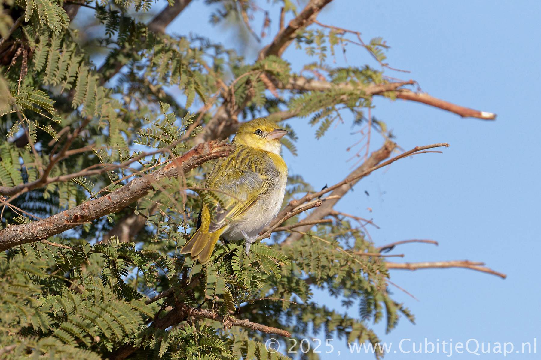 Female and non-breeding male lack the mask and are yellower below than southern masked-weaver. Female has a dark eye. Juvenile resembles female.