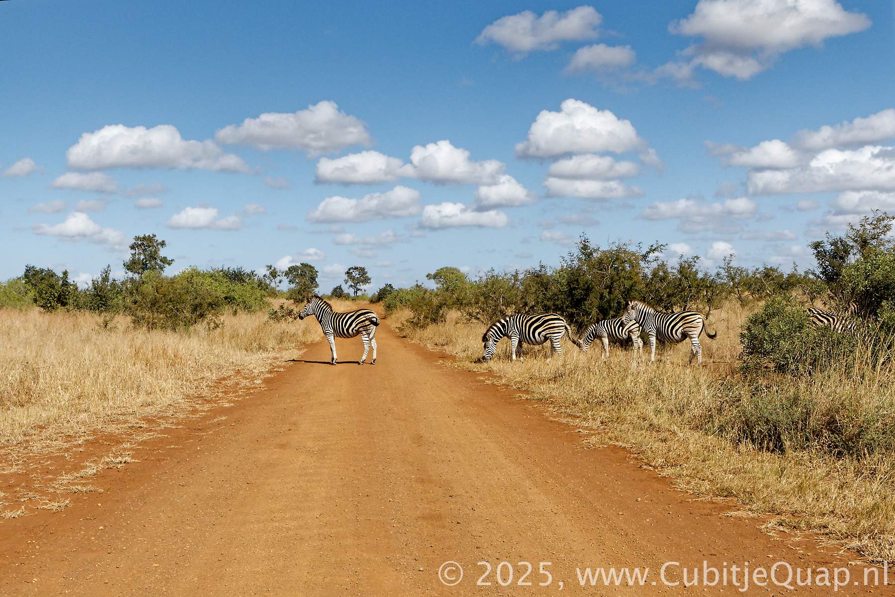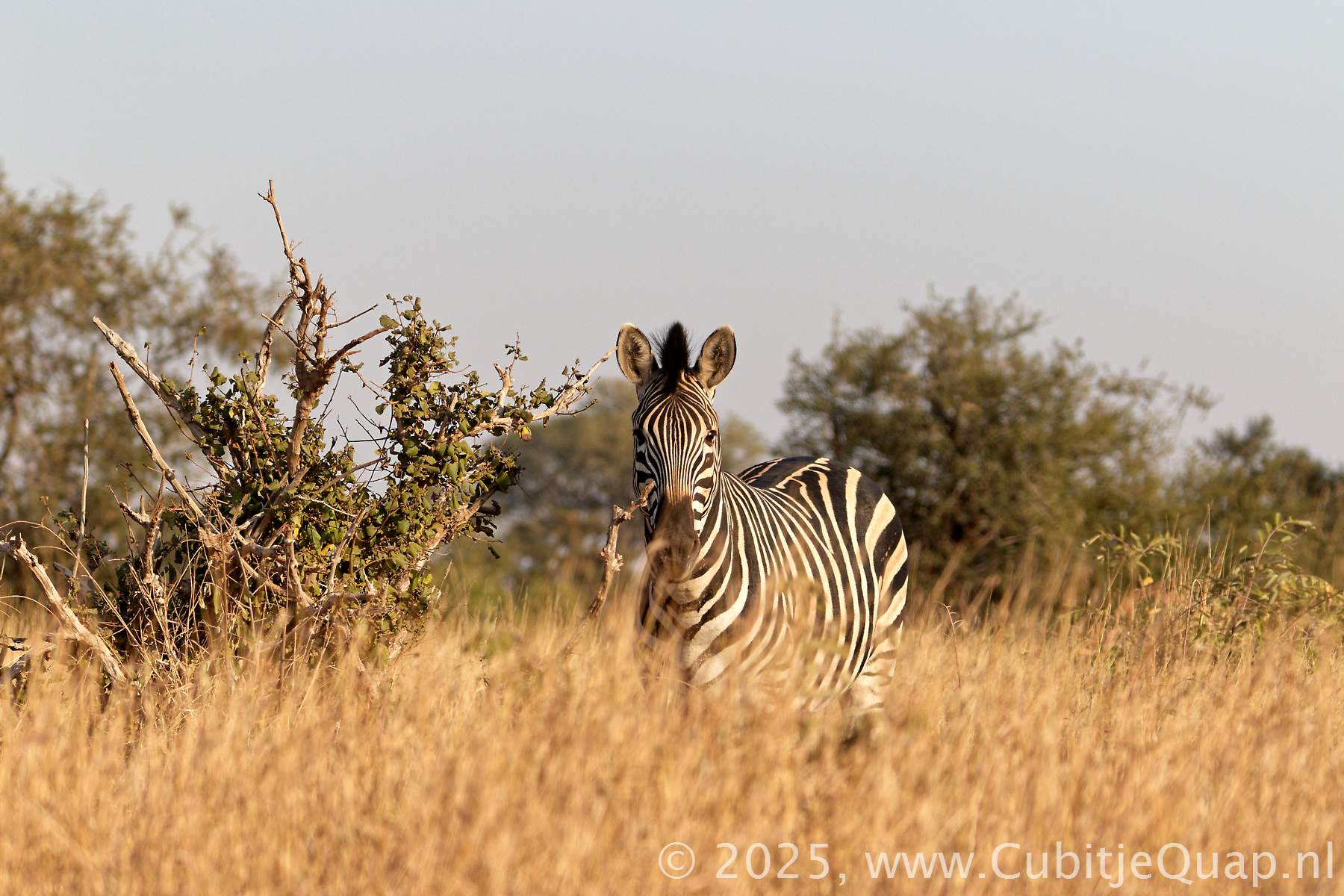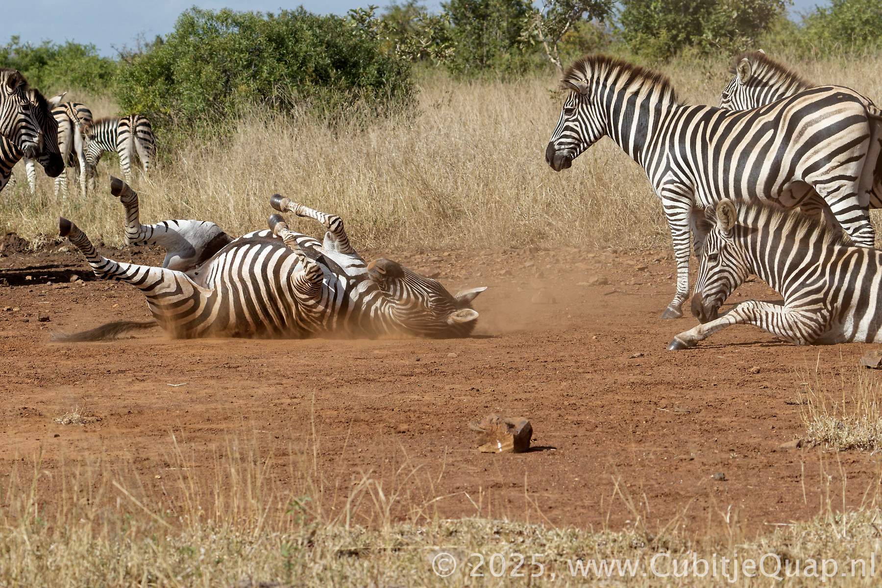 Plains zebras associate in family herds consisting of an adult stallion, mares and their foals. Other stallions form bachlor herds or run alone. Family herds usually consist of 4 - 6 members. Much larger herds are formed when numerous smaller herds come together temporarily. They all have a characteristic call that has been likened to a bark 'kwa-ha-ha' - which was also the call of the extinct Quagga, hence the name.