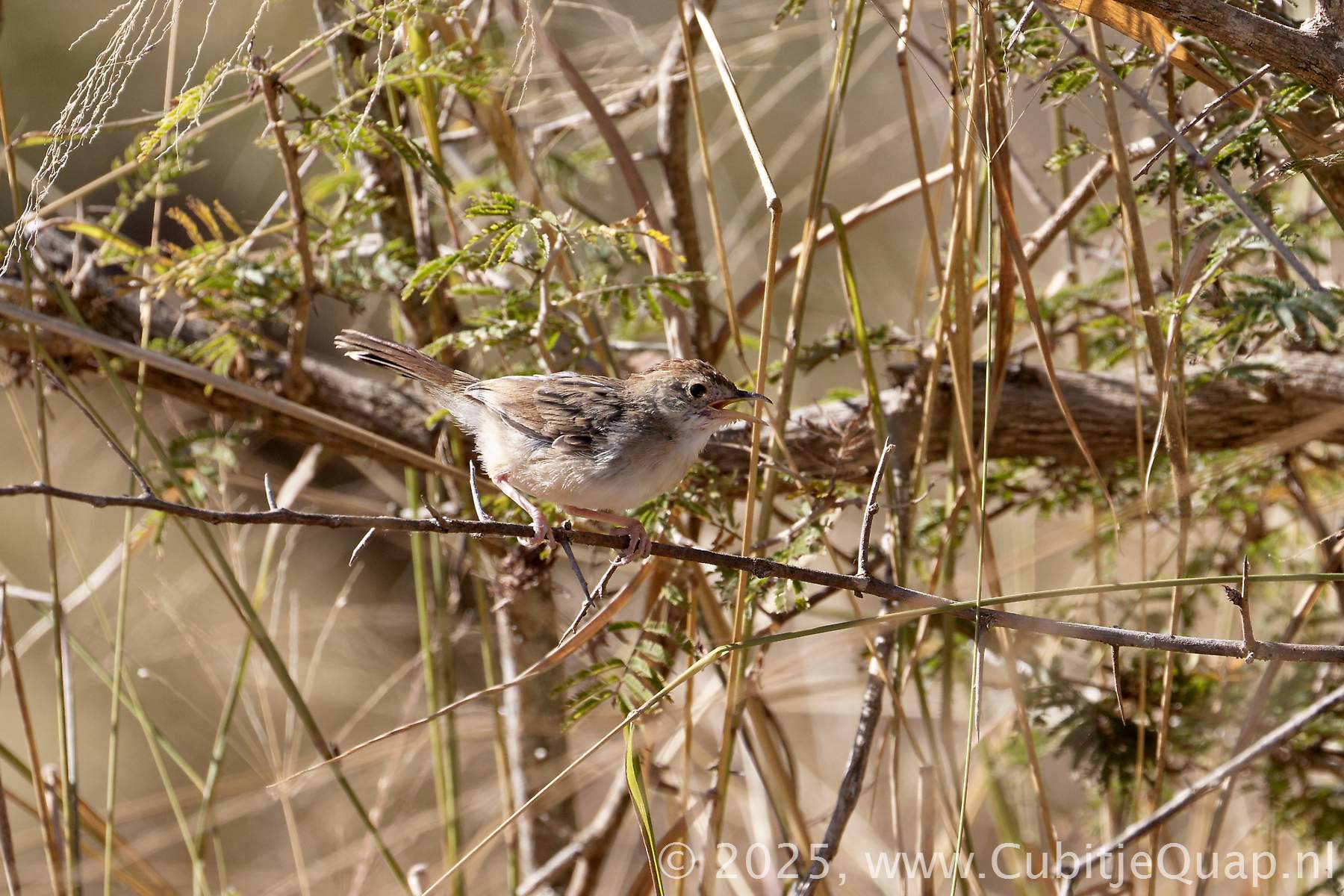 Easily confused woth tinkling cisticola because of its plumage coloration, but has much less red on the head, and the rufous on the tail is not as bright.