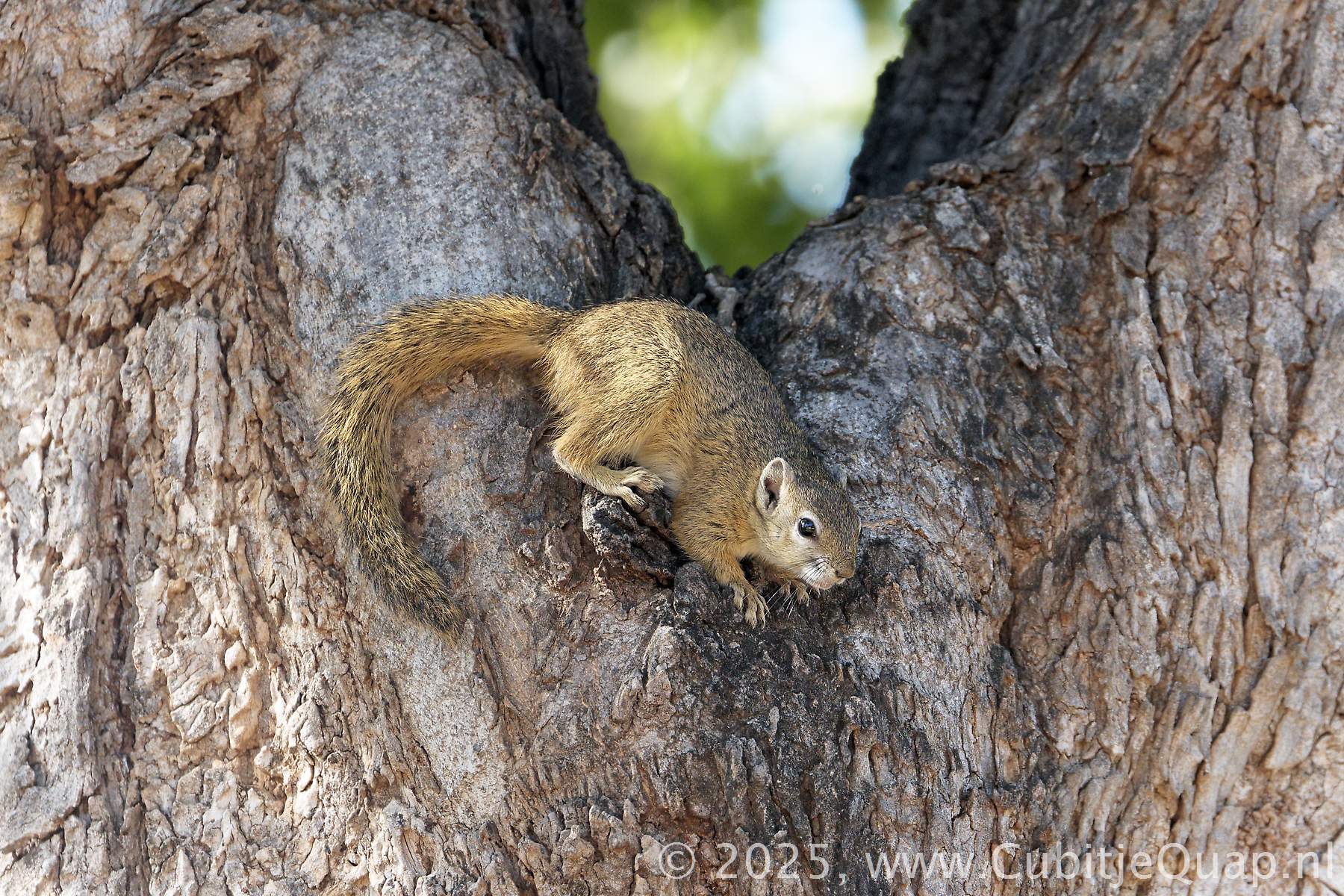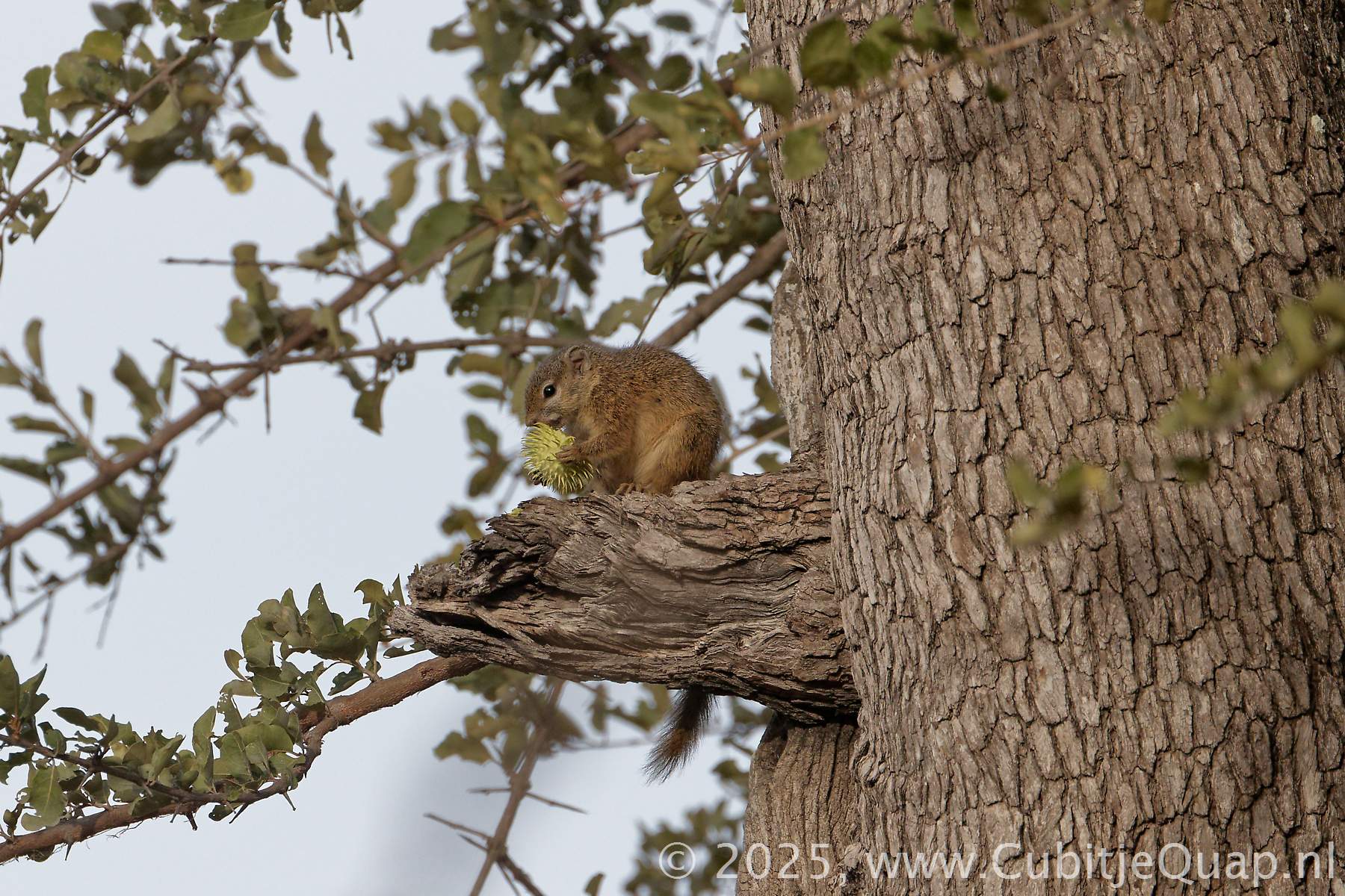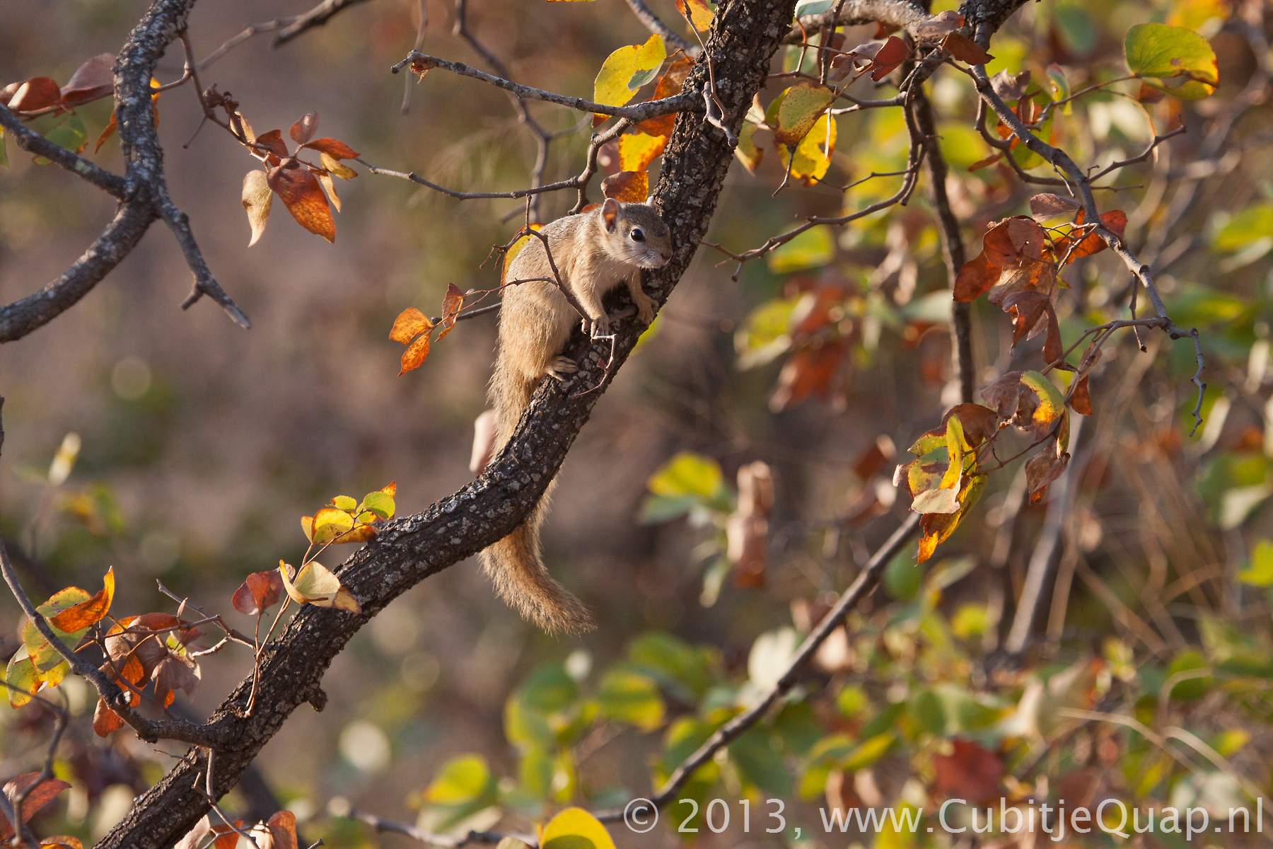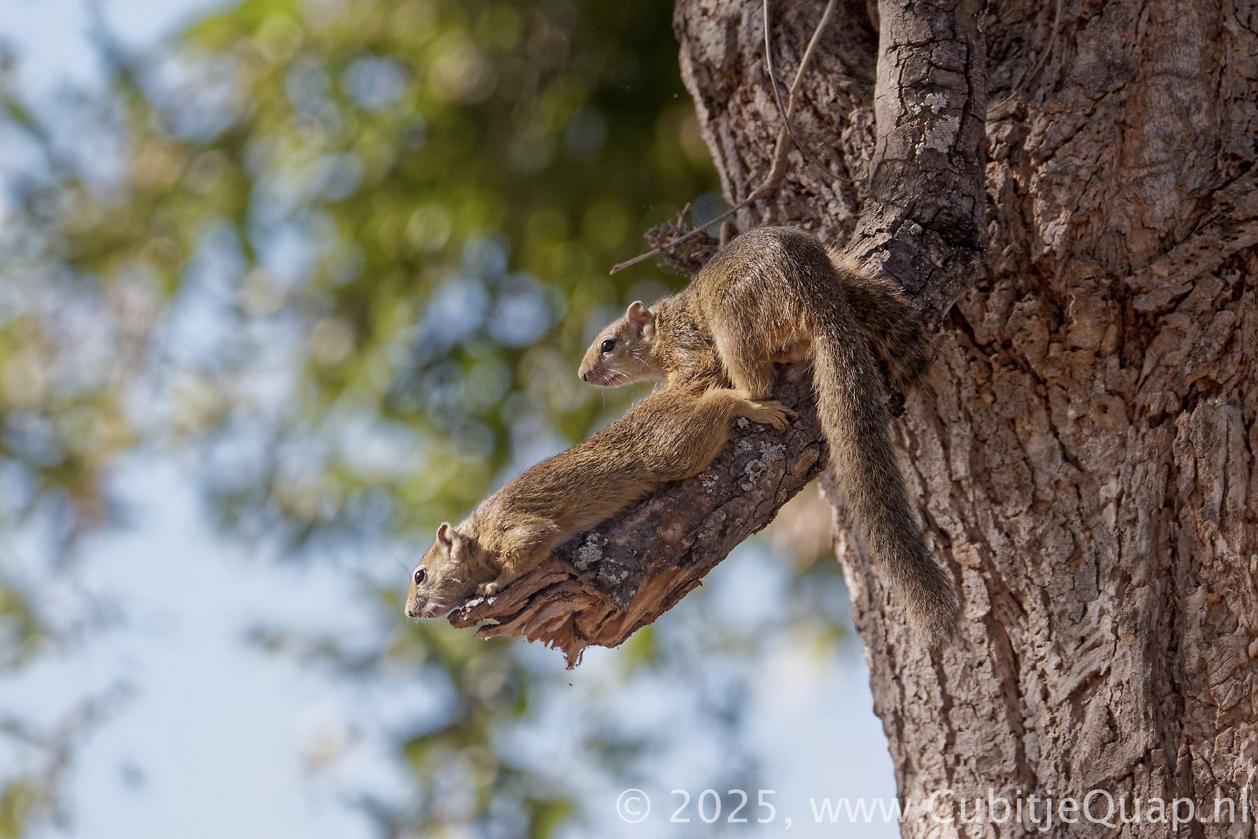 Although it is usually seen singly or in mother and young groups, a number of animals live in close association. The adult male or males in a group will defend a territory against incursions by other squirrels. As with other squirrel species it is very vocal.
