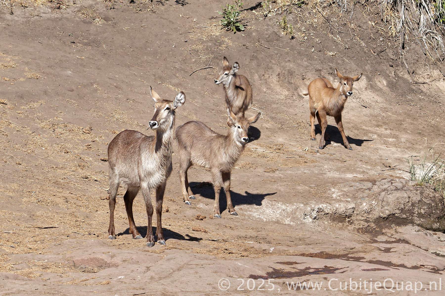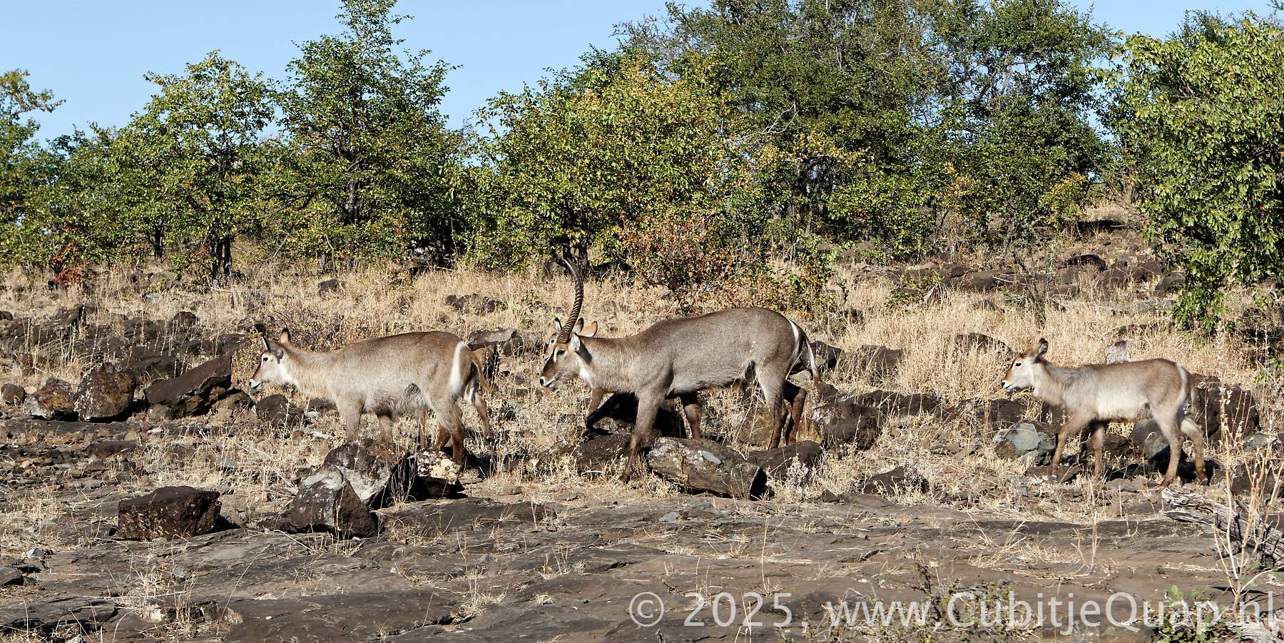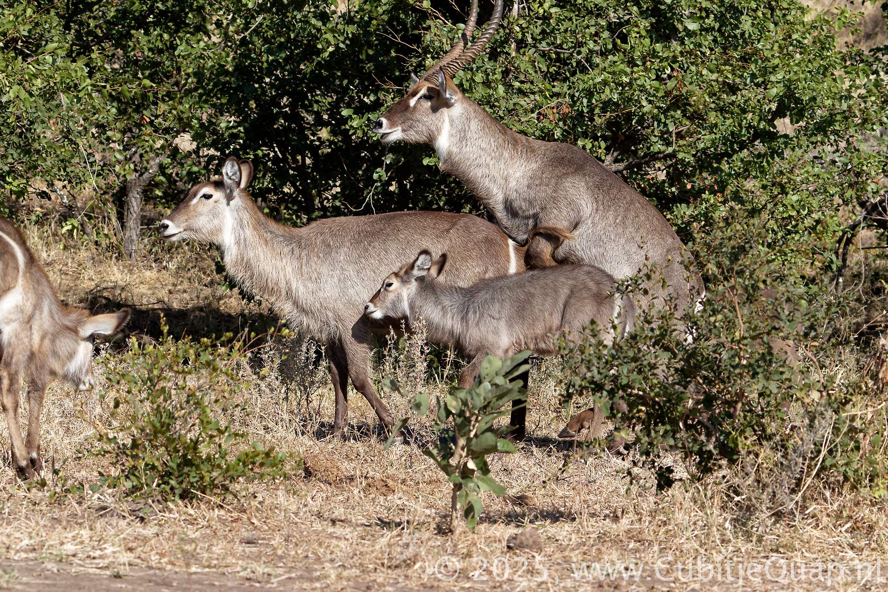 Waterbuck are gregarious, occuring in small herds of 5 - 10 but sometimes as many as 30. Nursery herds may move through territories of several bulls. Younger bulls form bachelor herds. Waterbuck can often be detected by the strong musky scent given off by their oily hair.