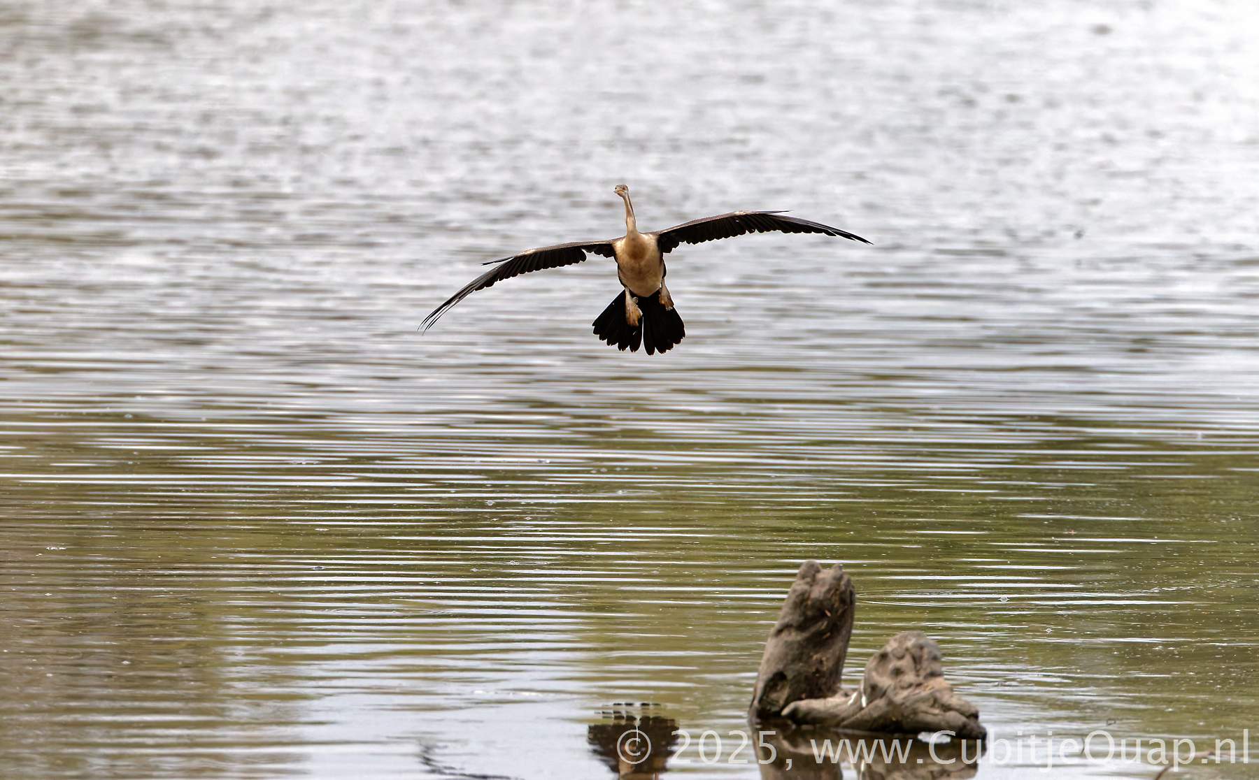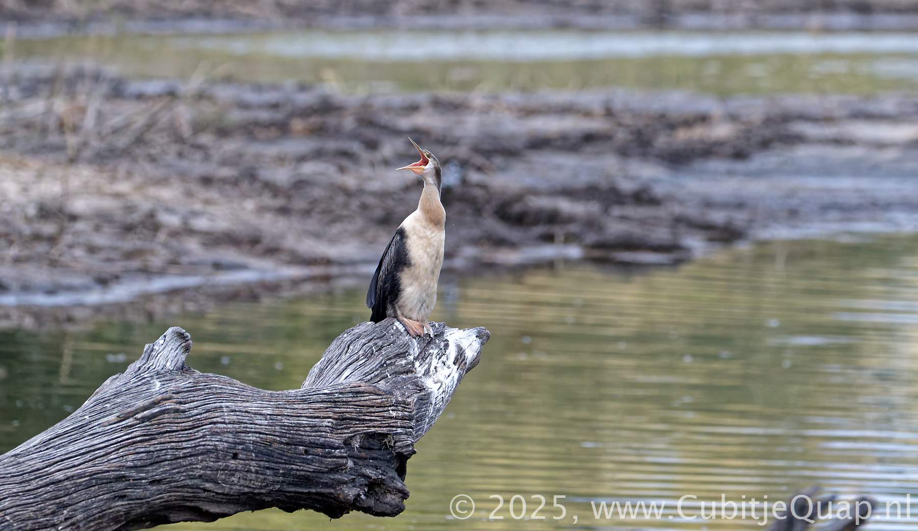 The largest cormorant of the region. Adult is glossy black with a white throat and breast, and a bright yellow patch at the base of the bill. During breeding season it has white flank patches.