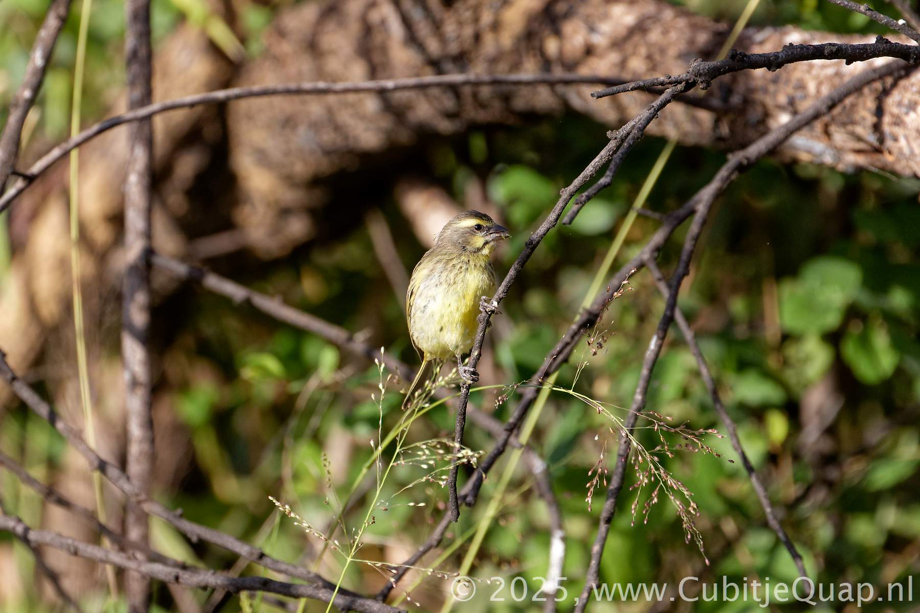 Colour varies regionally (brightest in east). Facial pattern diagnostic. Differs from brimstone canary by its smaller size, less robust bill, yellow rump and white tailtips.