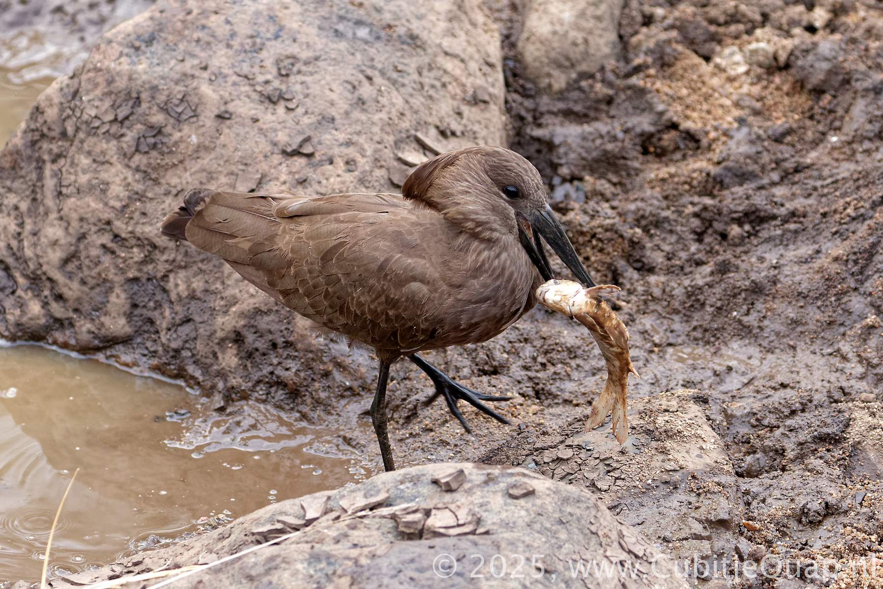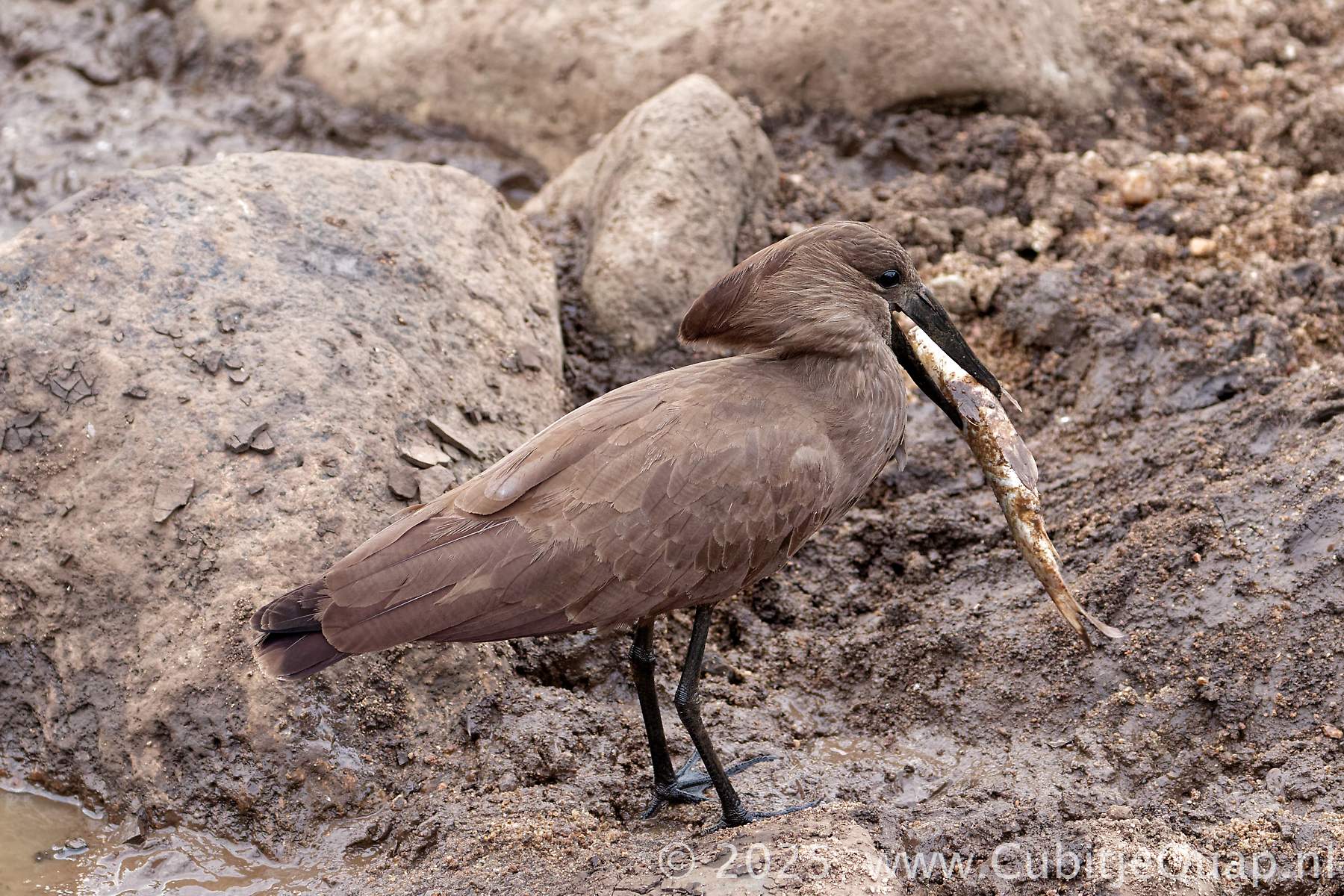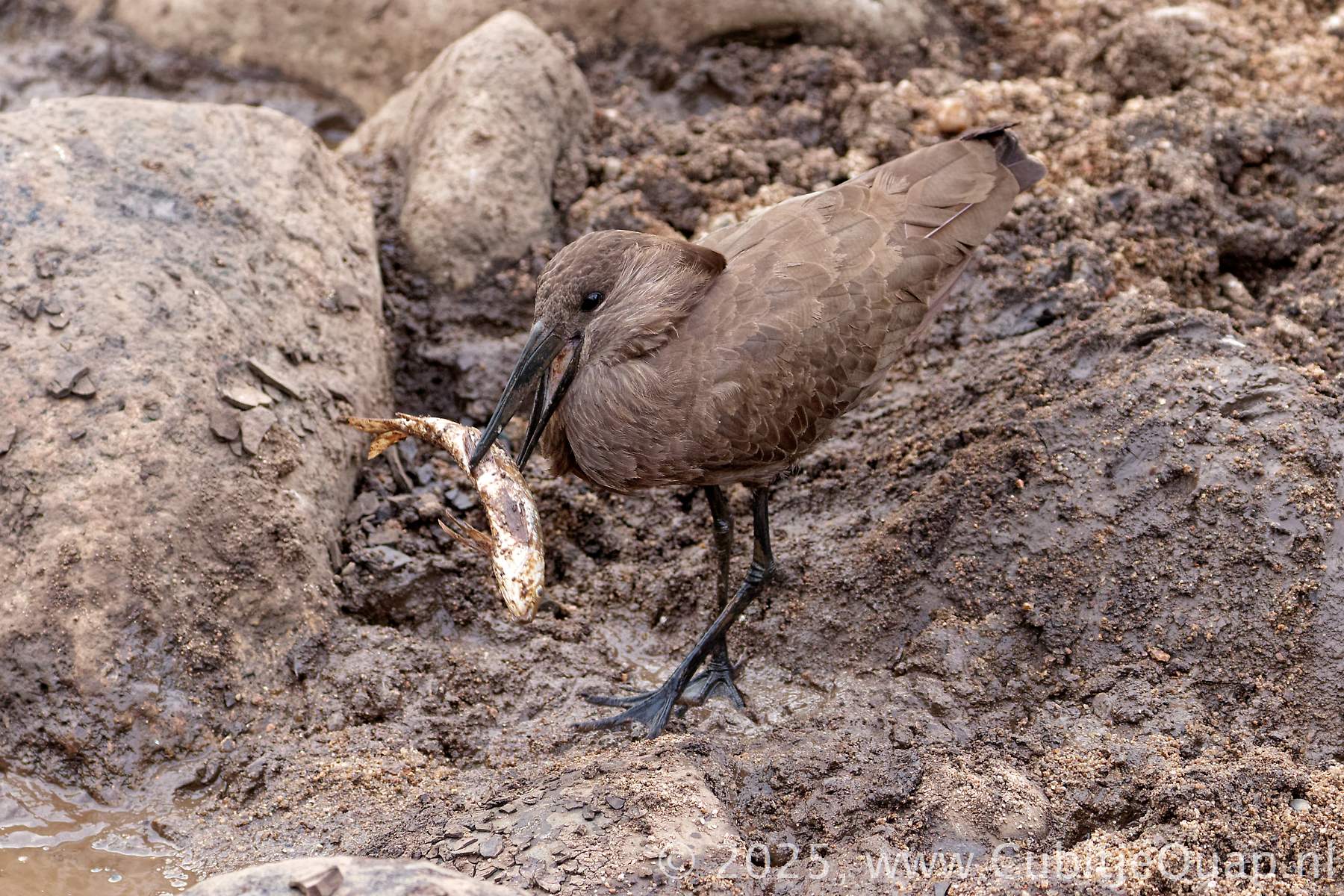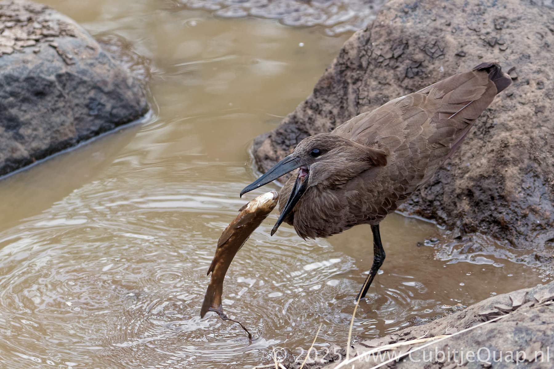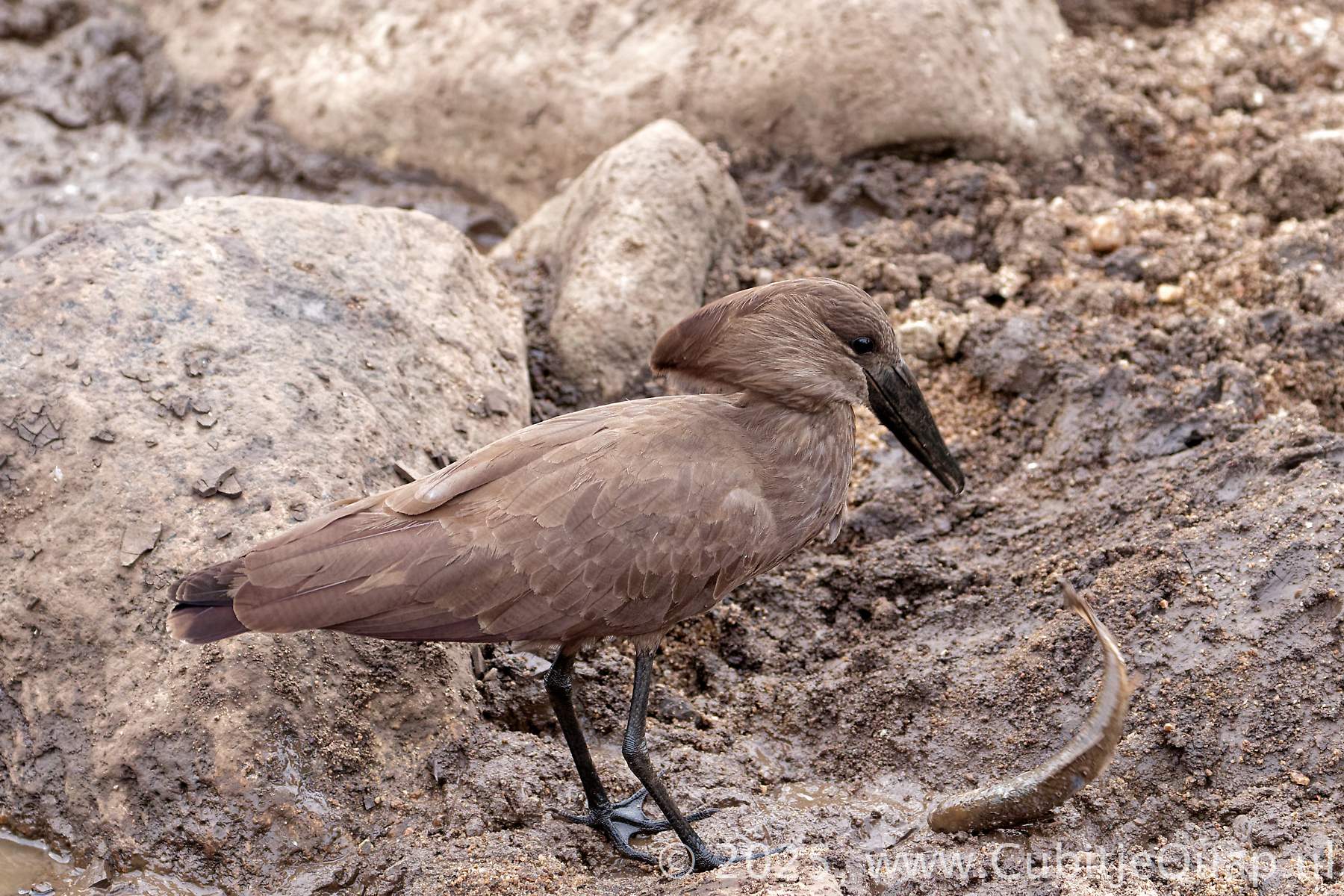 Tadpoles, frogs and fish are the main foodsource for the hamerkop, but they also eat small birds and rodents.
