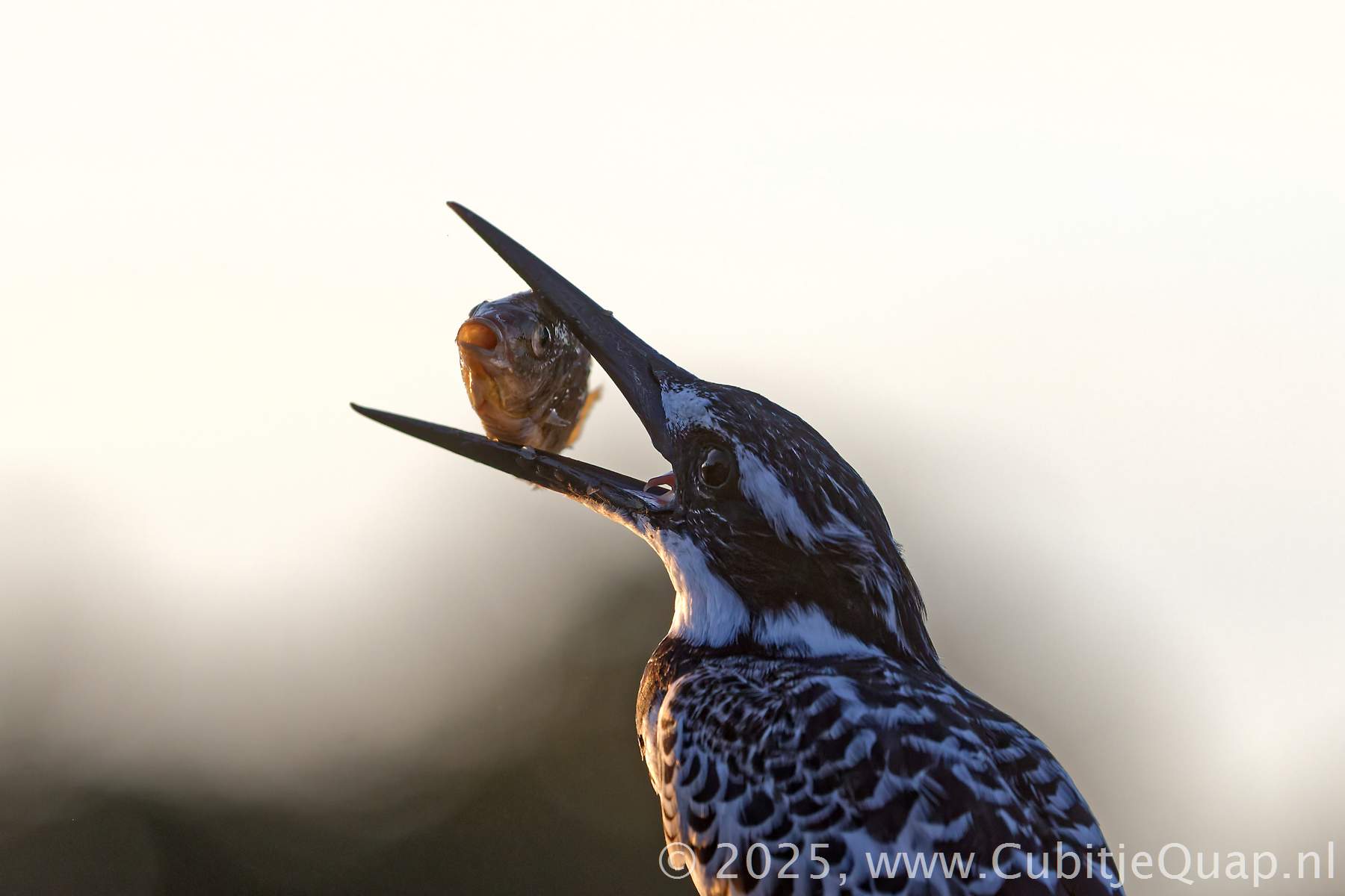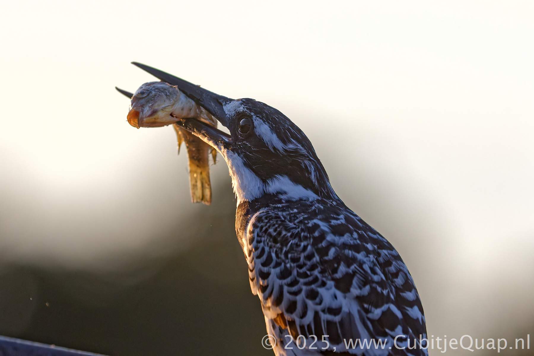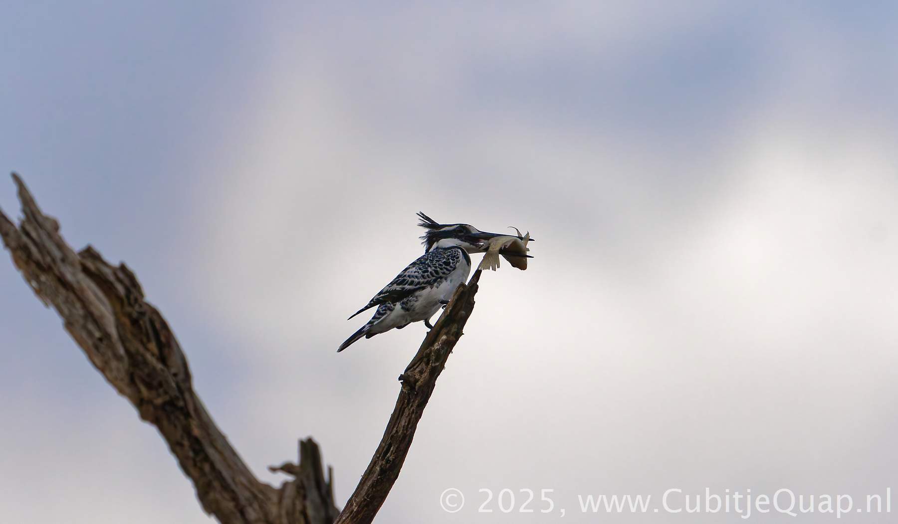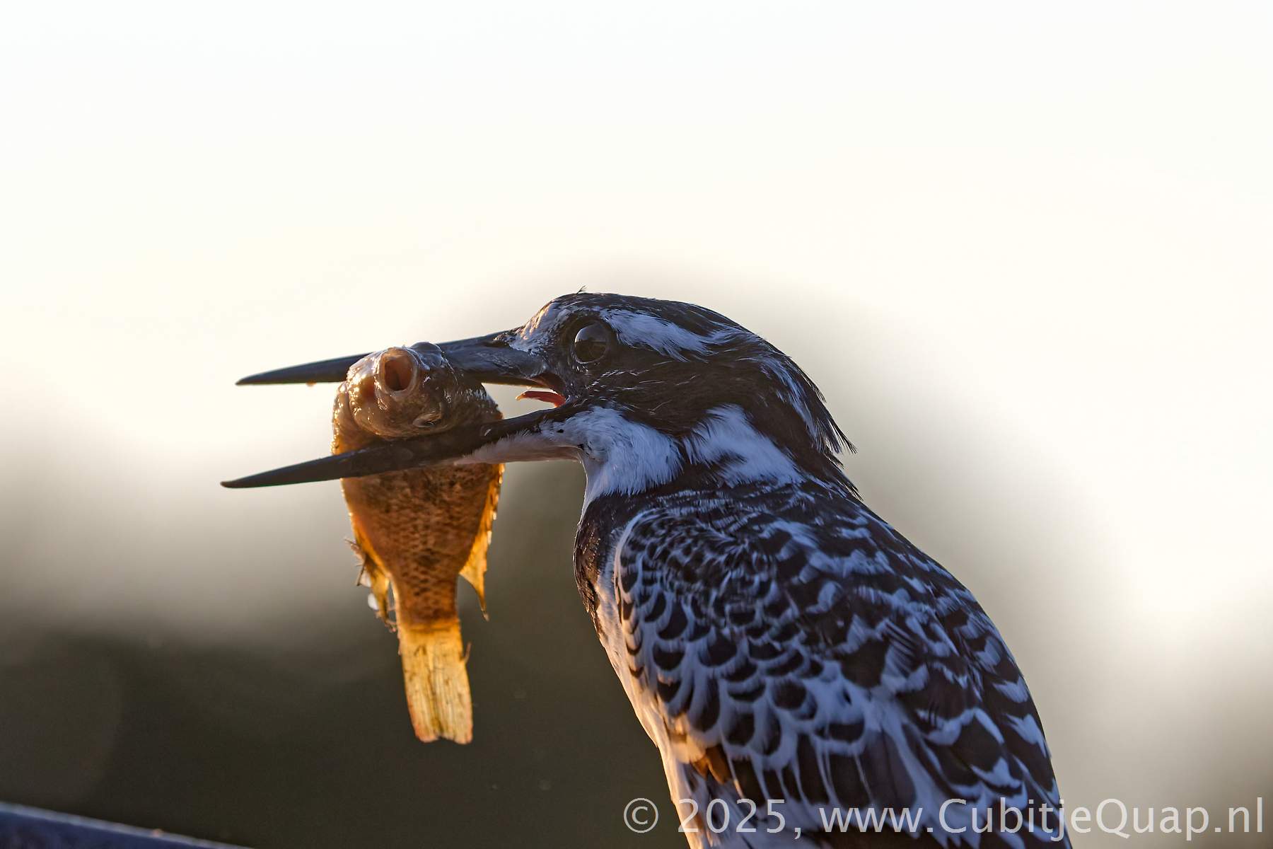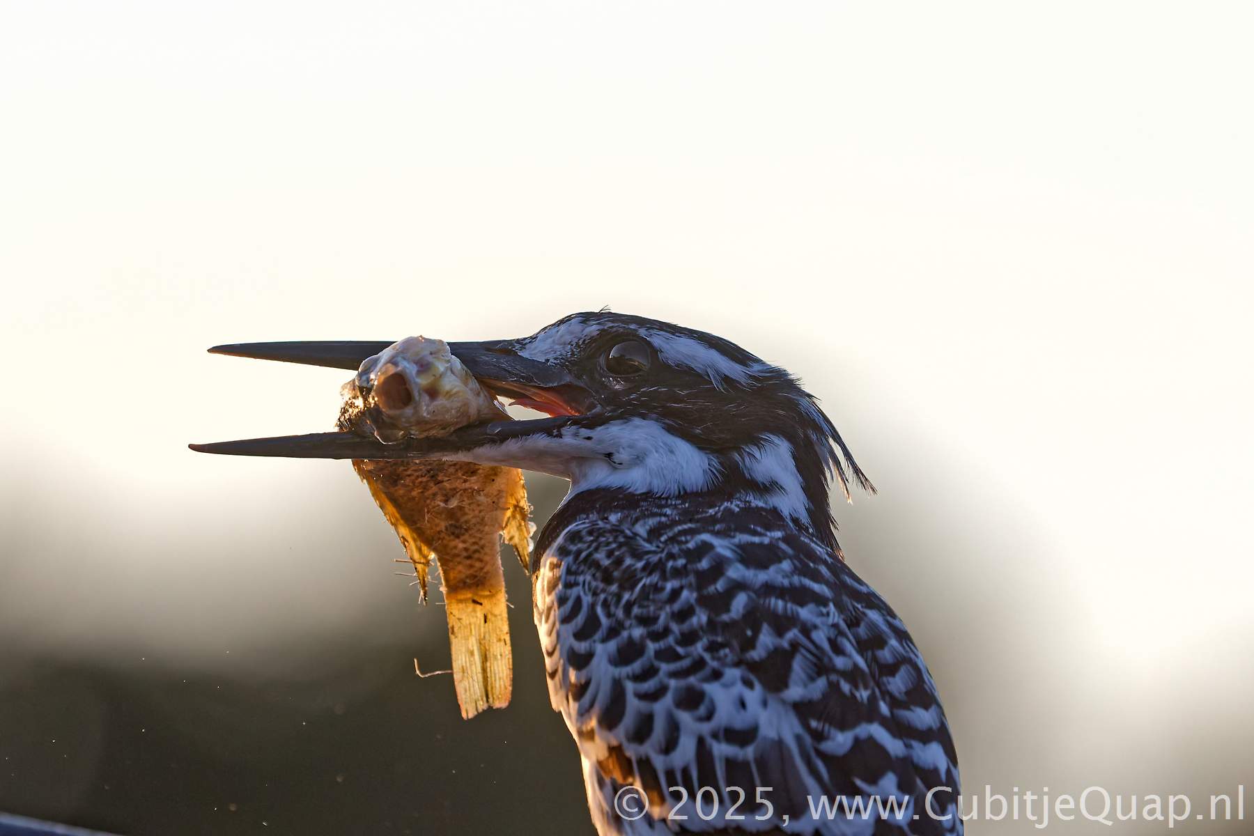 The pied kingfisher feeds mainly on fish, although it will take crustaceans and large aquatic insects such as dragonfly larvae.