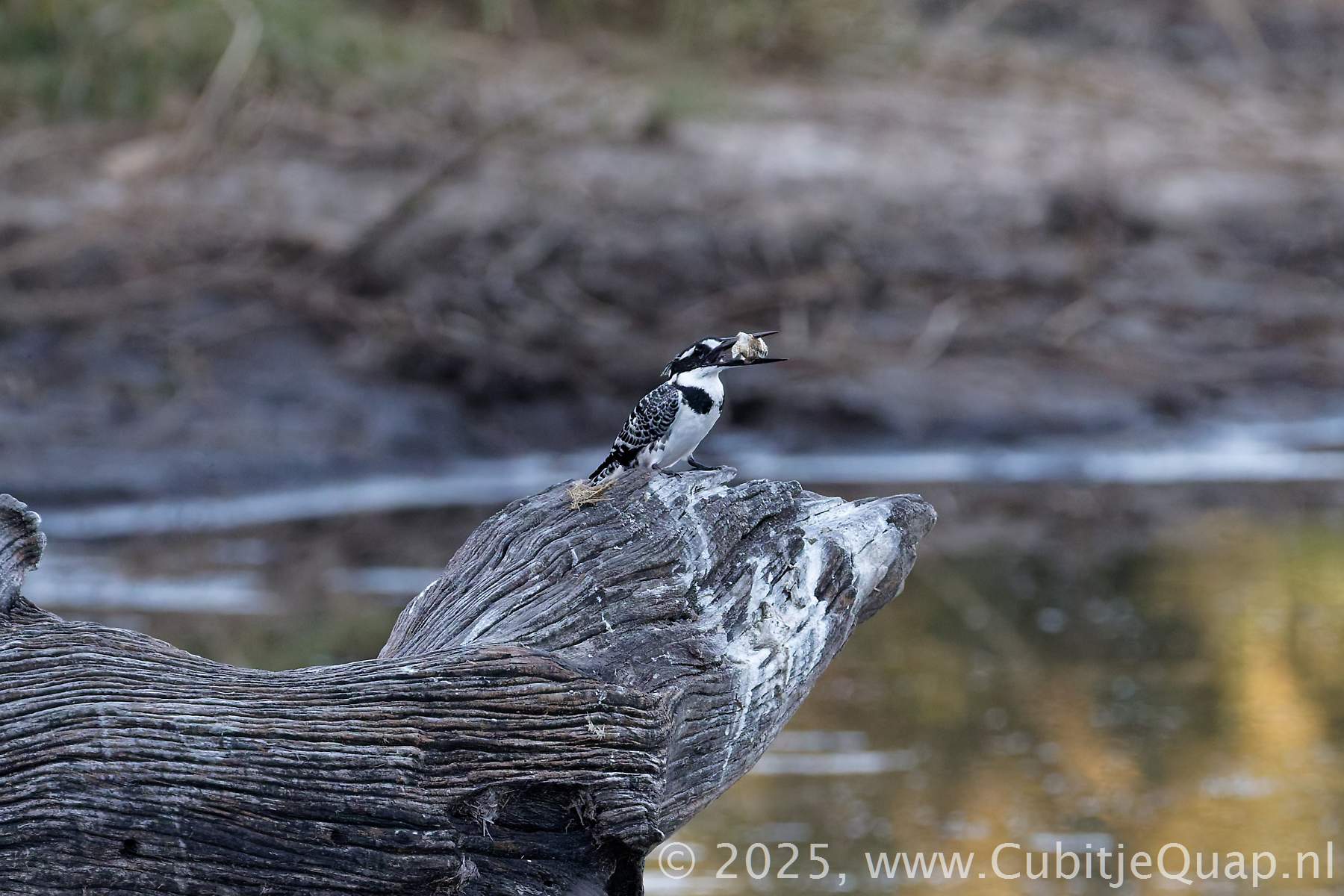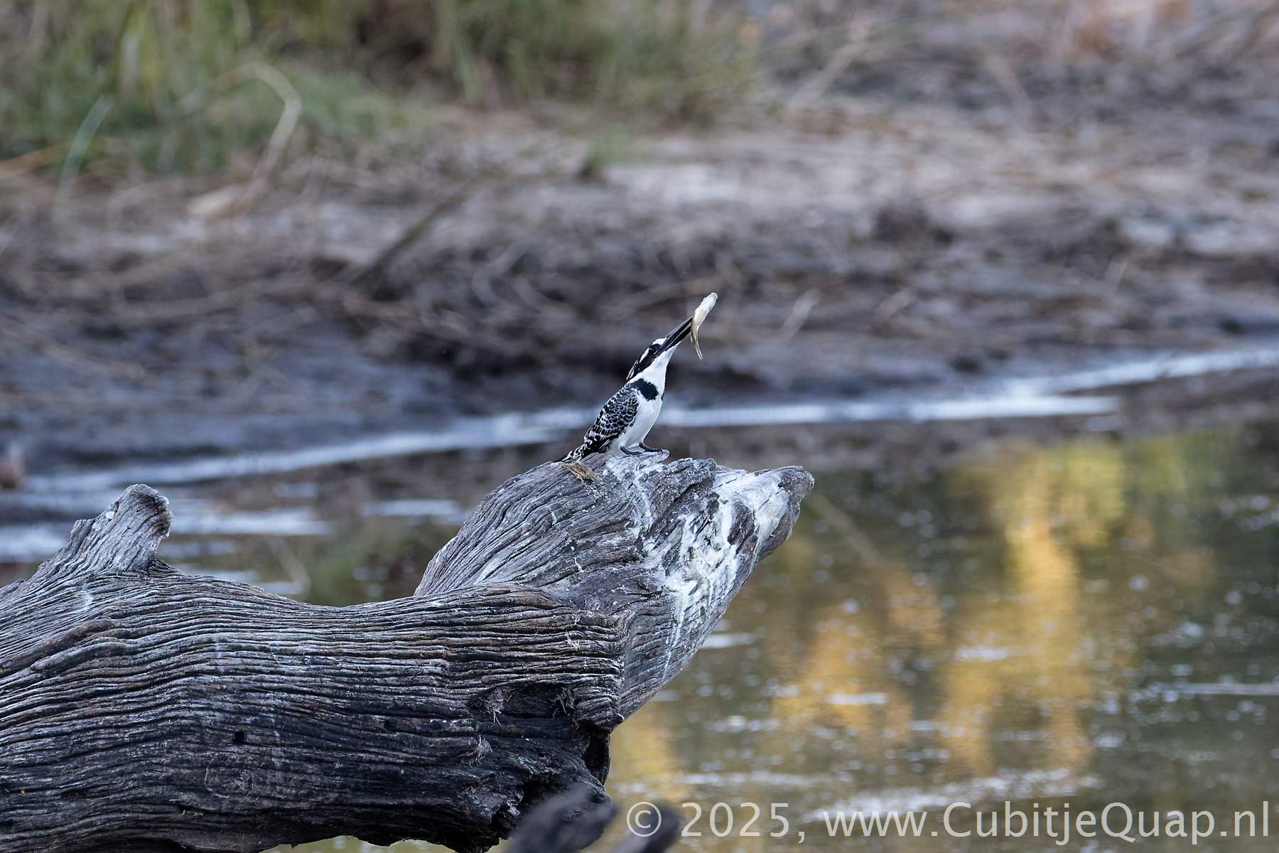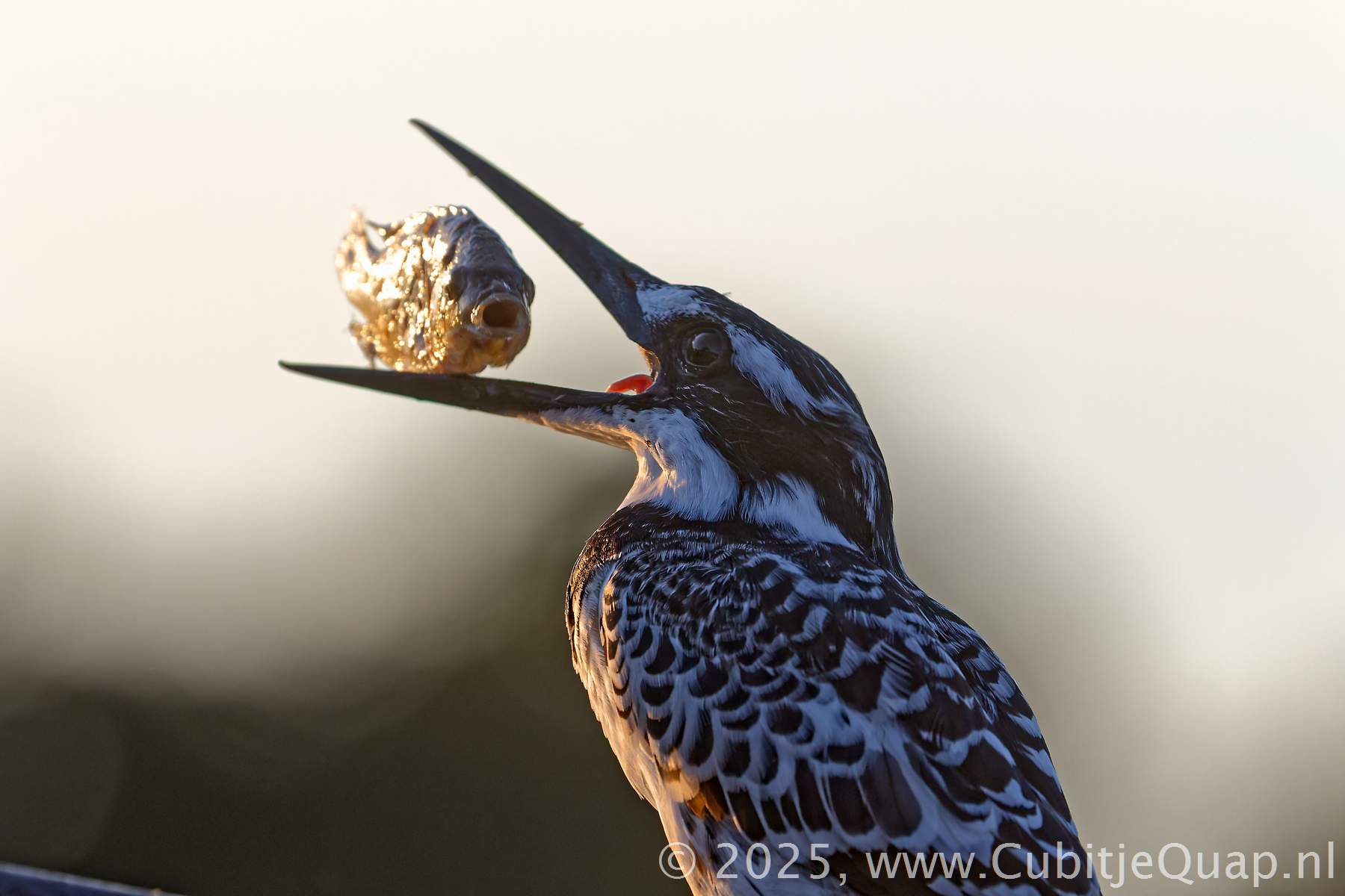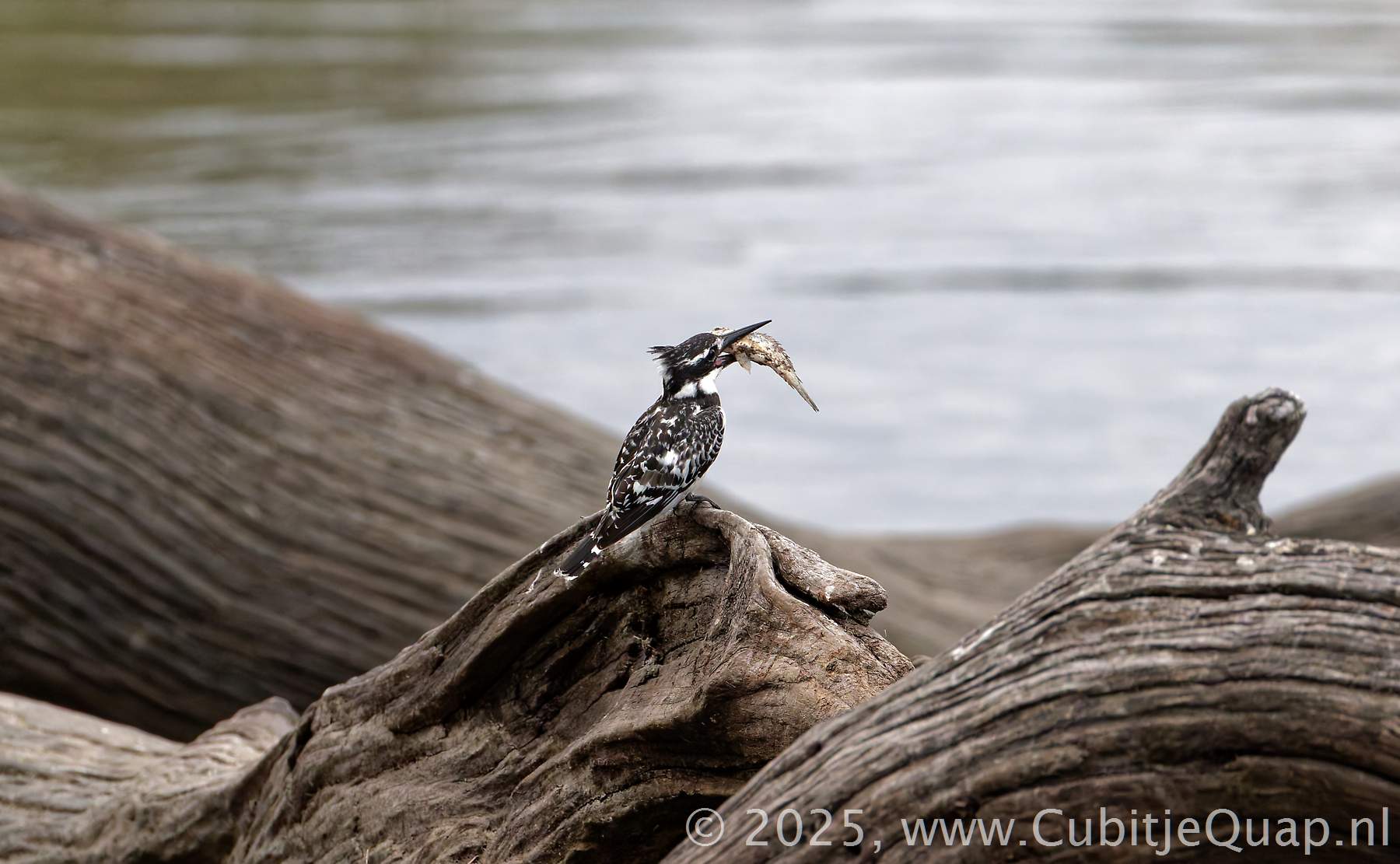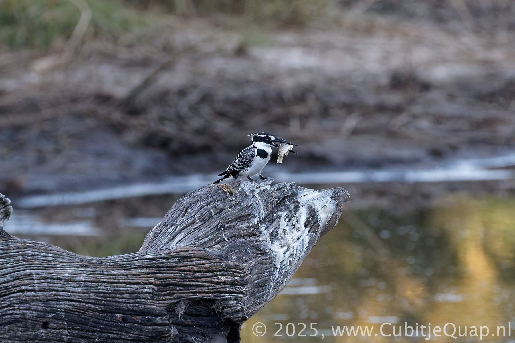 The pied kingfisher feeds mainly on fish, although it will take crustaceans and large aquatic insects such as dragonfly larvae.