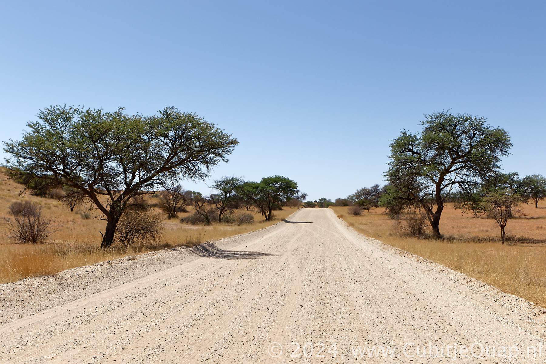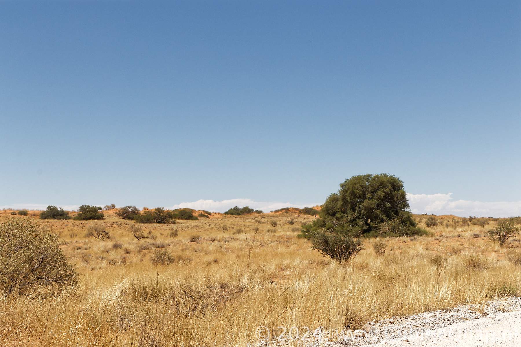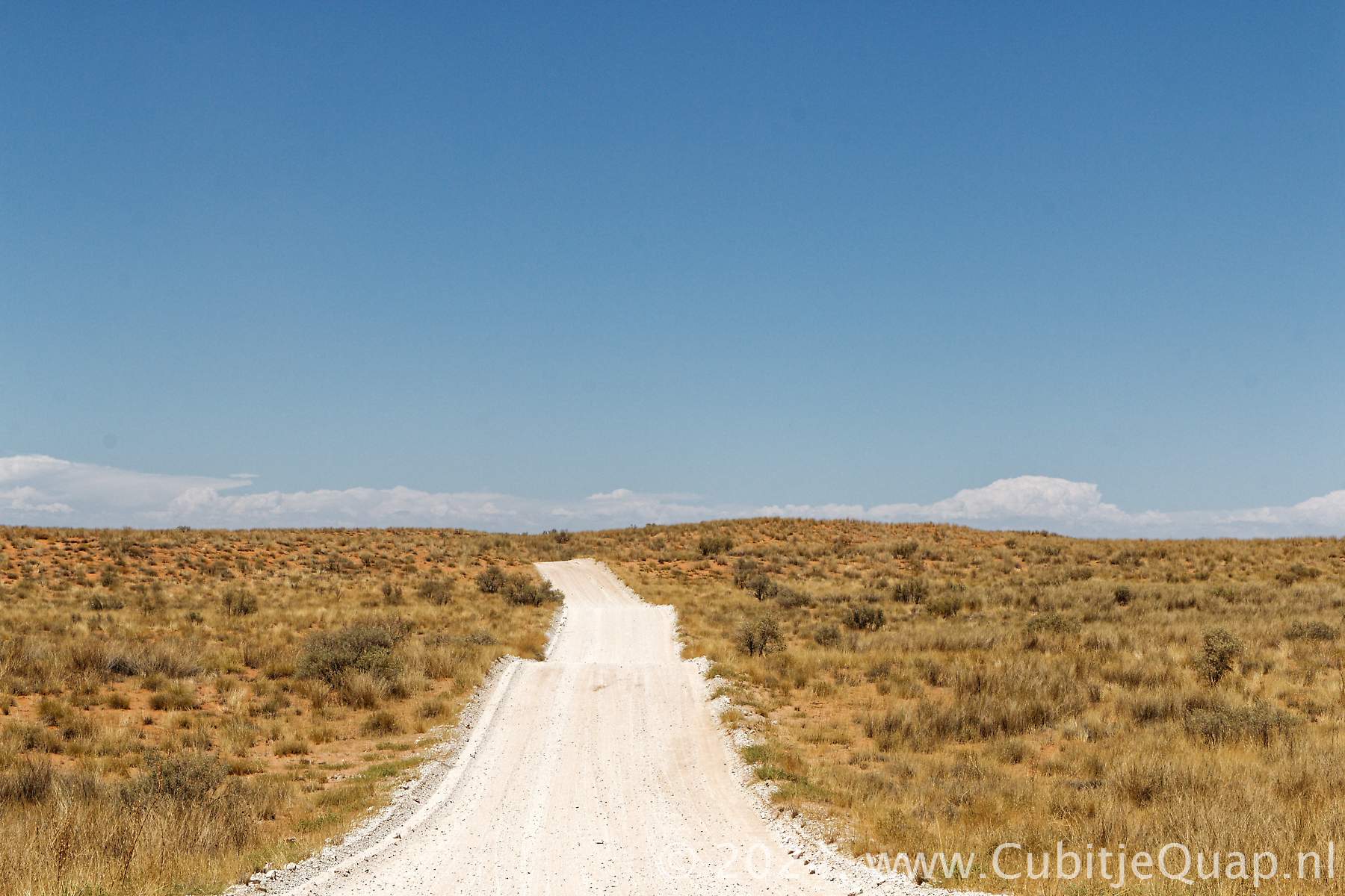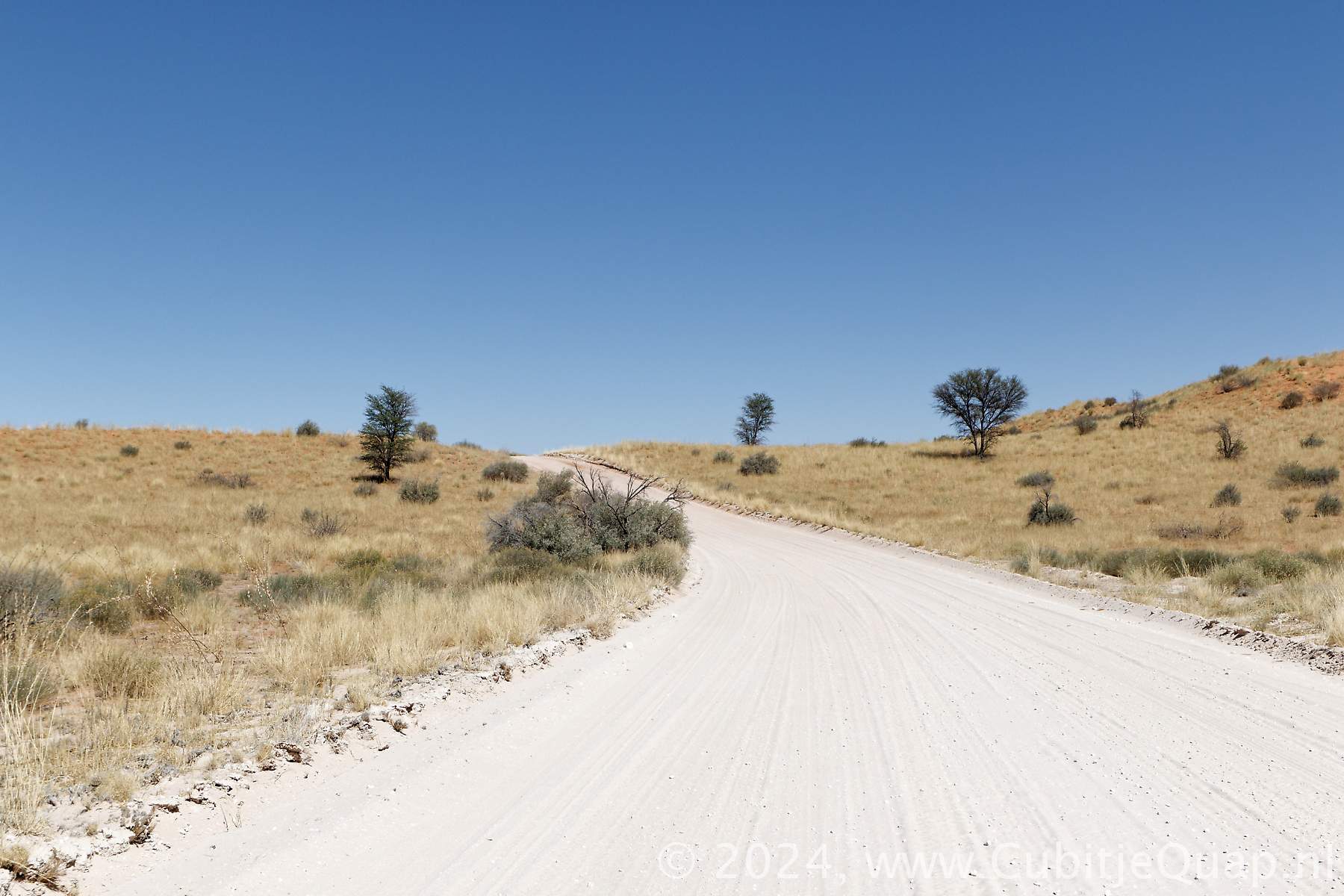 The lower dune road, about 35 kilometers connects Kij Kij to Auchterlonie via Tierkop, Kij Gamies and the Kielie Krankie access road. The hilly gravelled road traverses the red dunes. A viewpoint on a high dune behind Kij Gamies waterhole offers a spectacular view of the dune area.